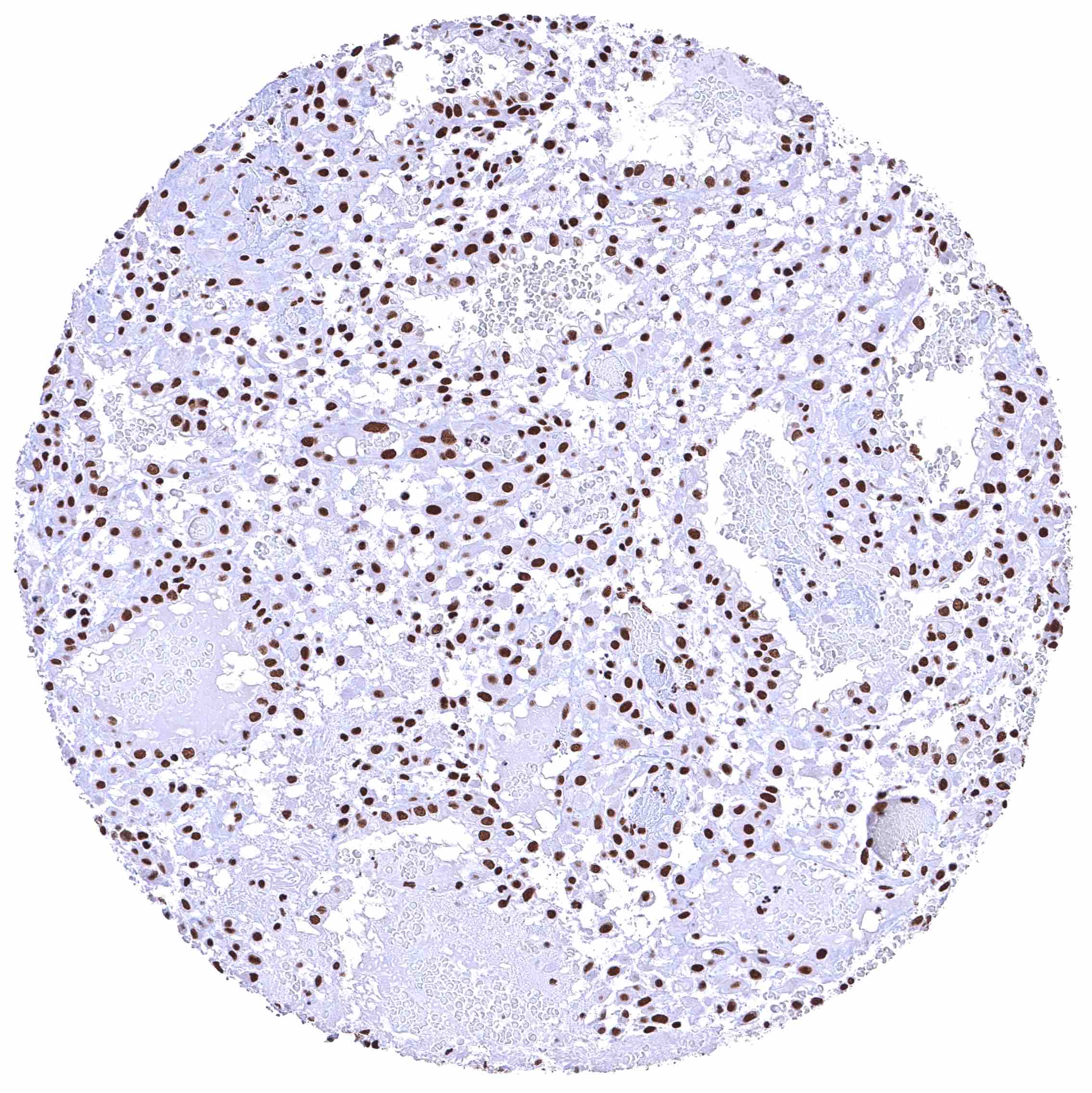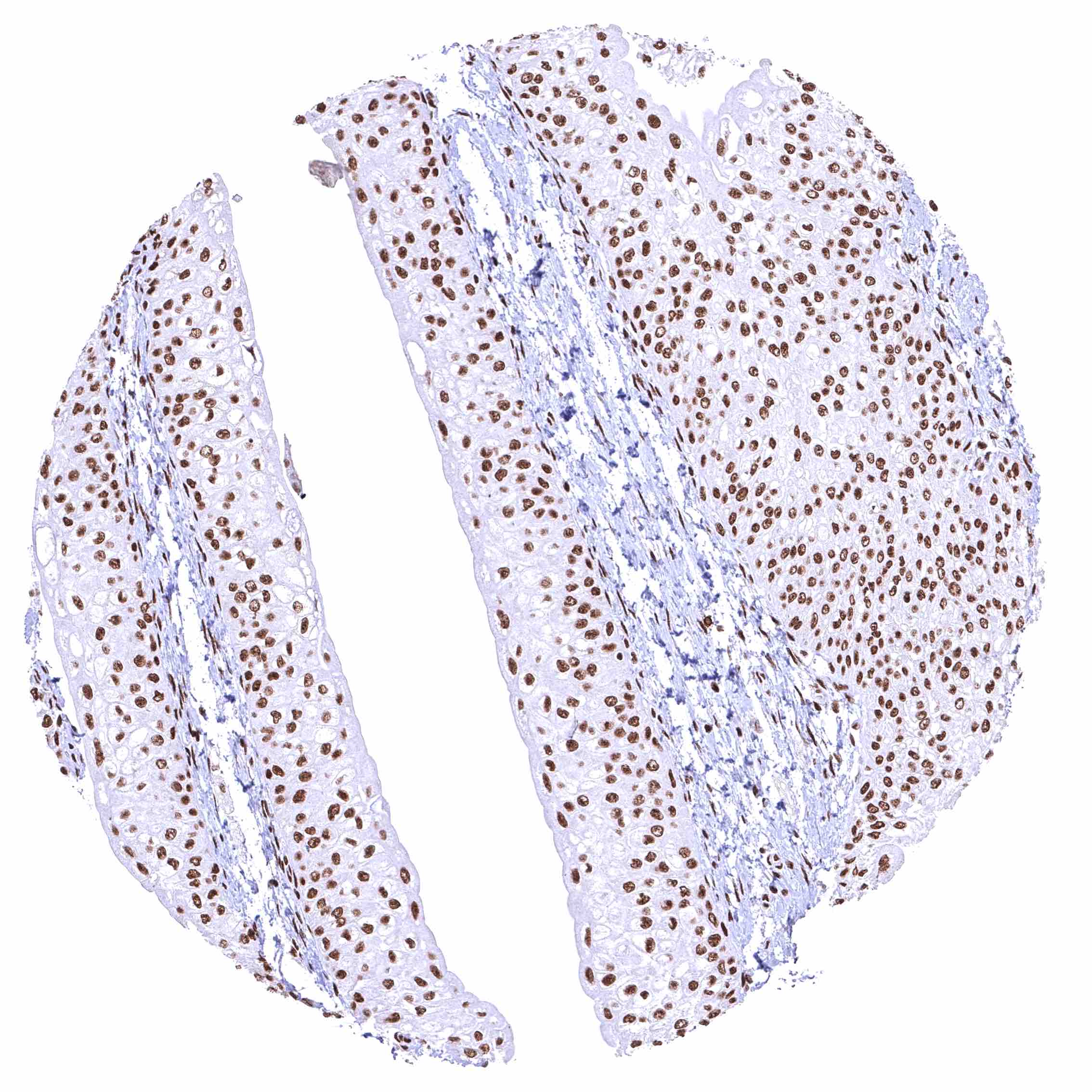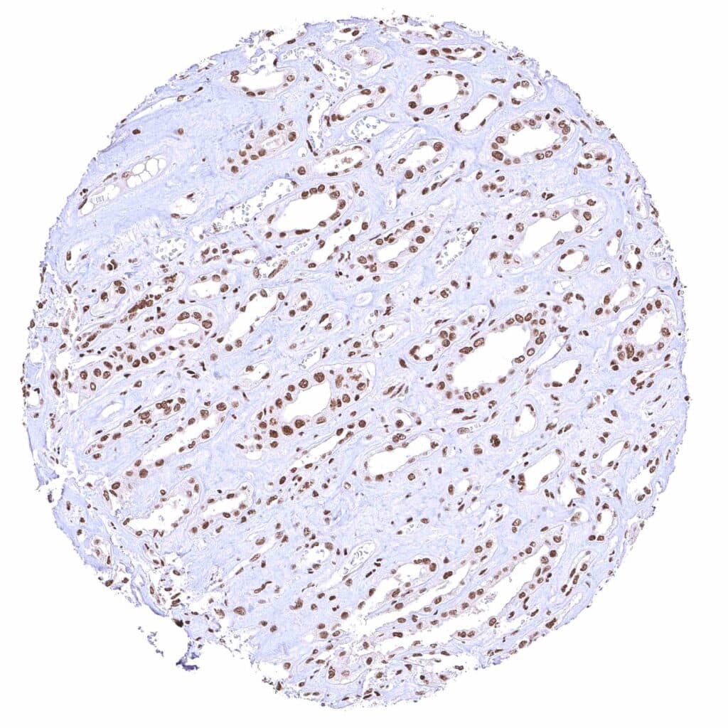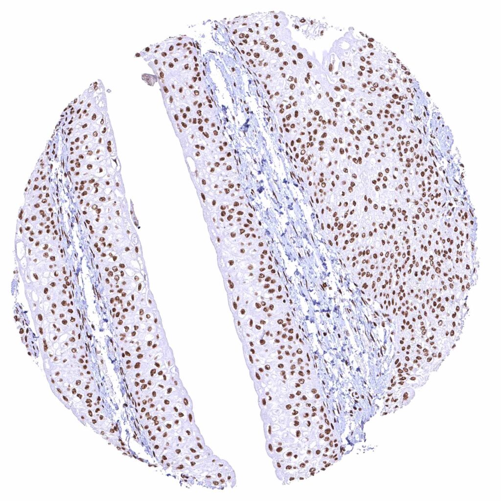 Kidney, pelvis, urothelium – Distinct nuclear BRD4 staining of urothelial cells.