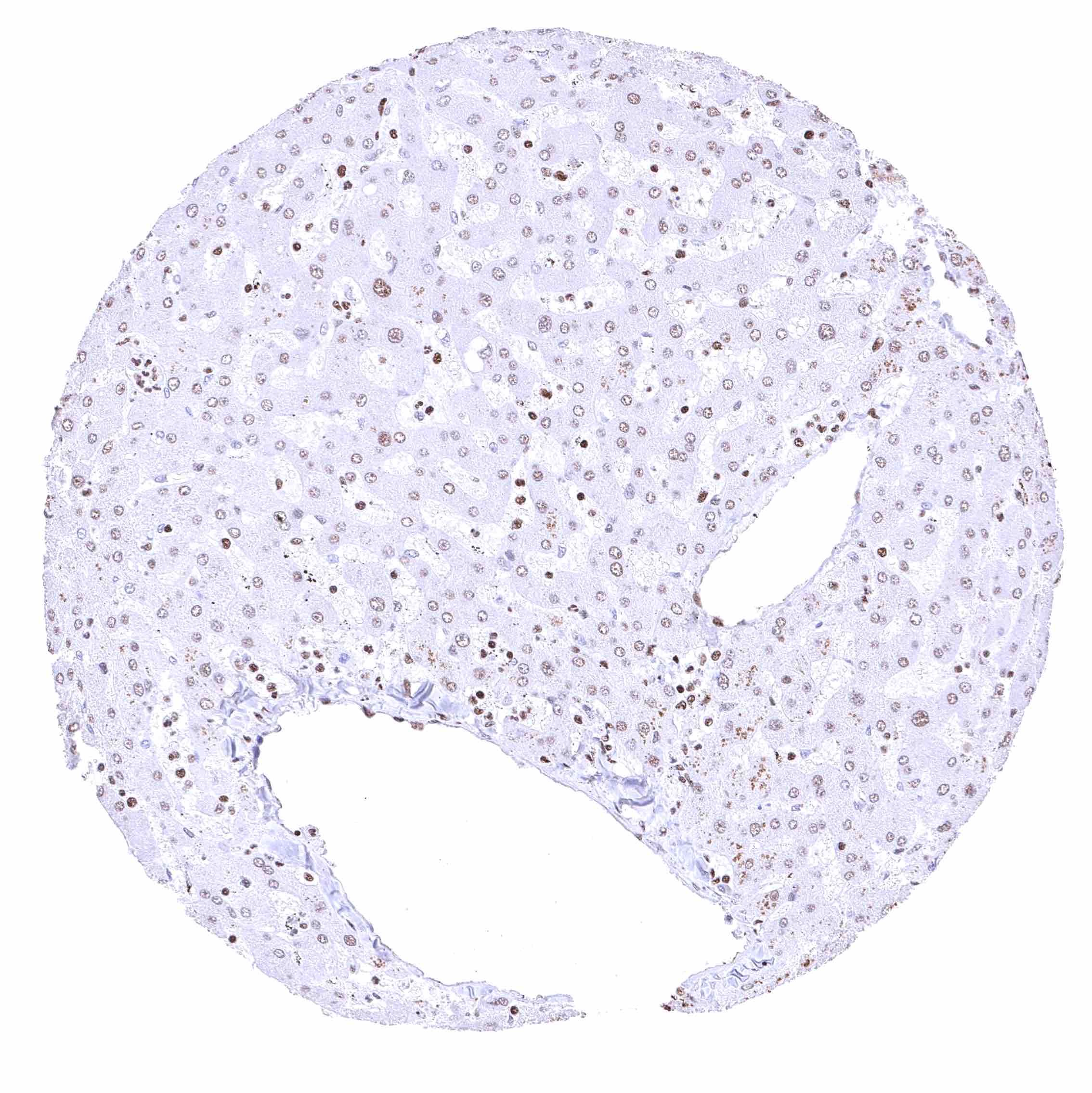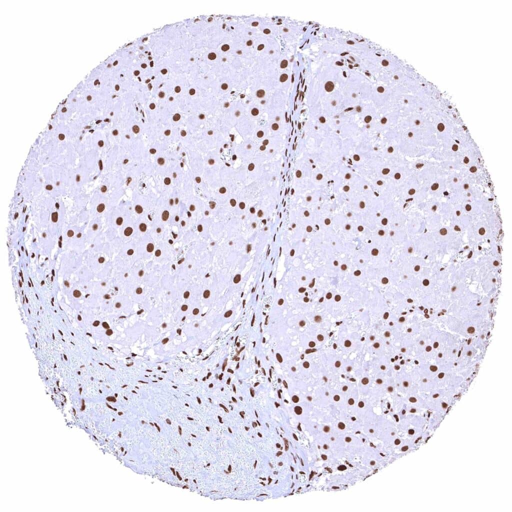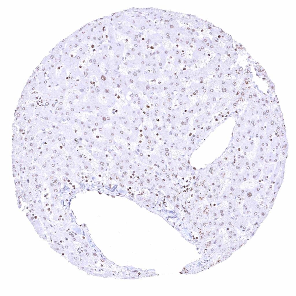 Liver – Nuclear BRD4 staining occurs in all cells, but is clearly weakest in hepatocytes.