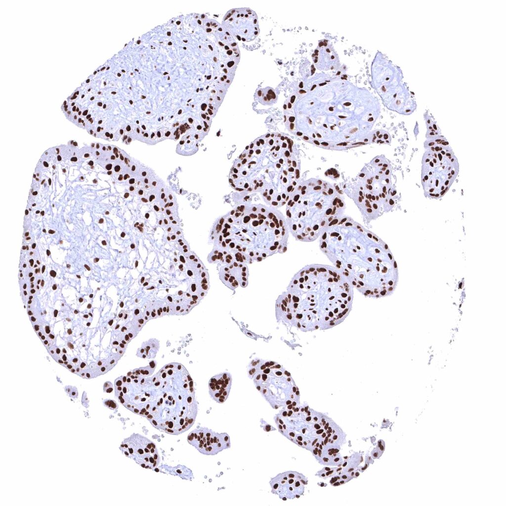 Placenta (amnion and chorion) – Strong nuclear BRD4 staining of both amnion and chorion cells.