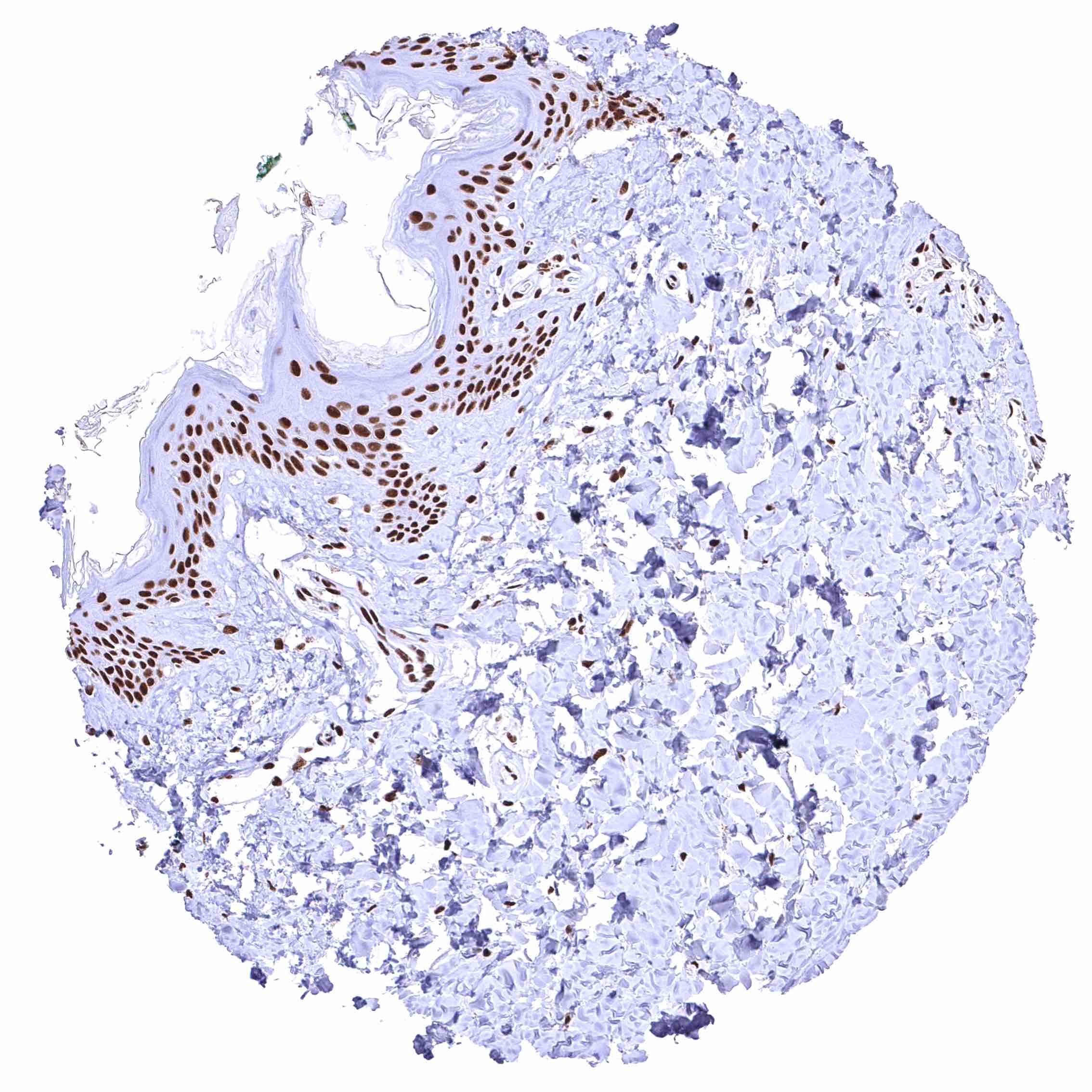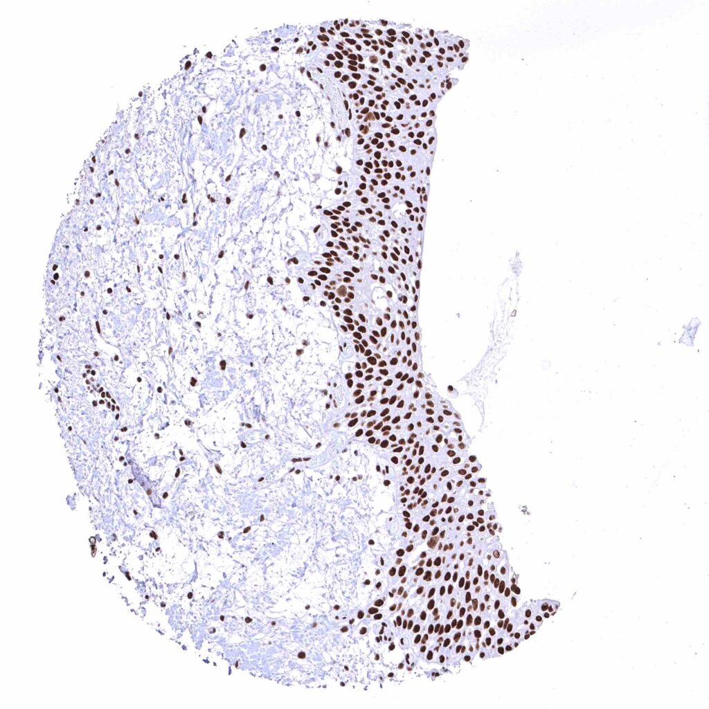 Skin – Strong nuclear BRD4 staining of squamous epithelial cells.