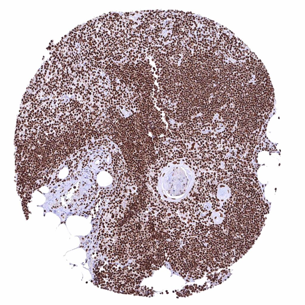 Lymph node – Strong nuclear BRD4 staining of all cell types.