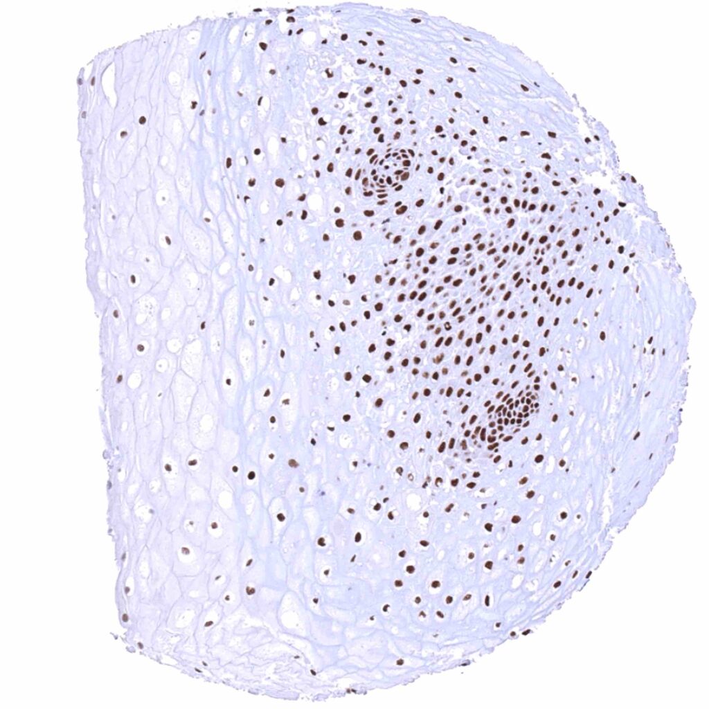 Uterus, ectocervix – Distinct nuclear BRD4 staining of squamous epithelial cells with a slight decrease of the staining intensity towards the most superficial cell layers. .jpeg