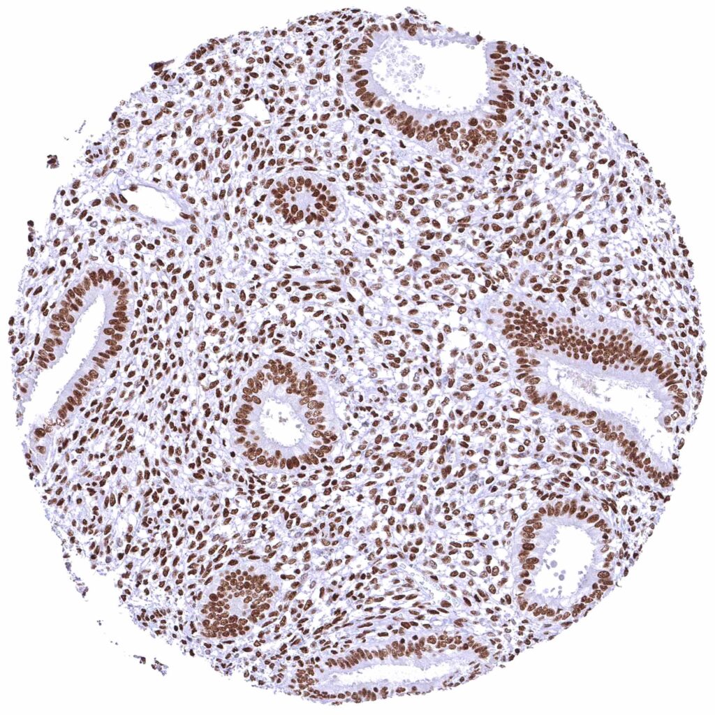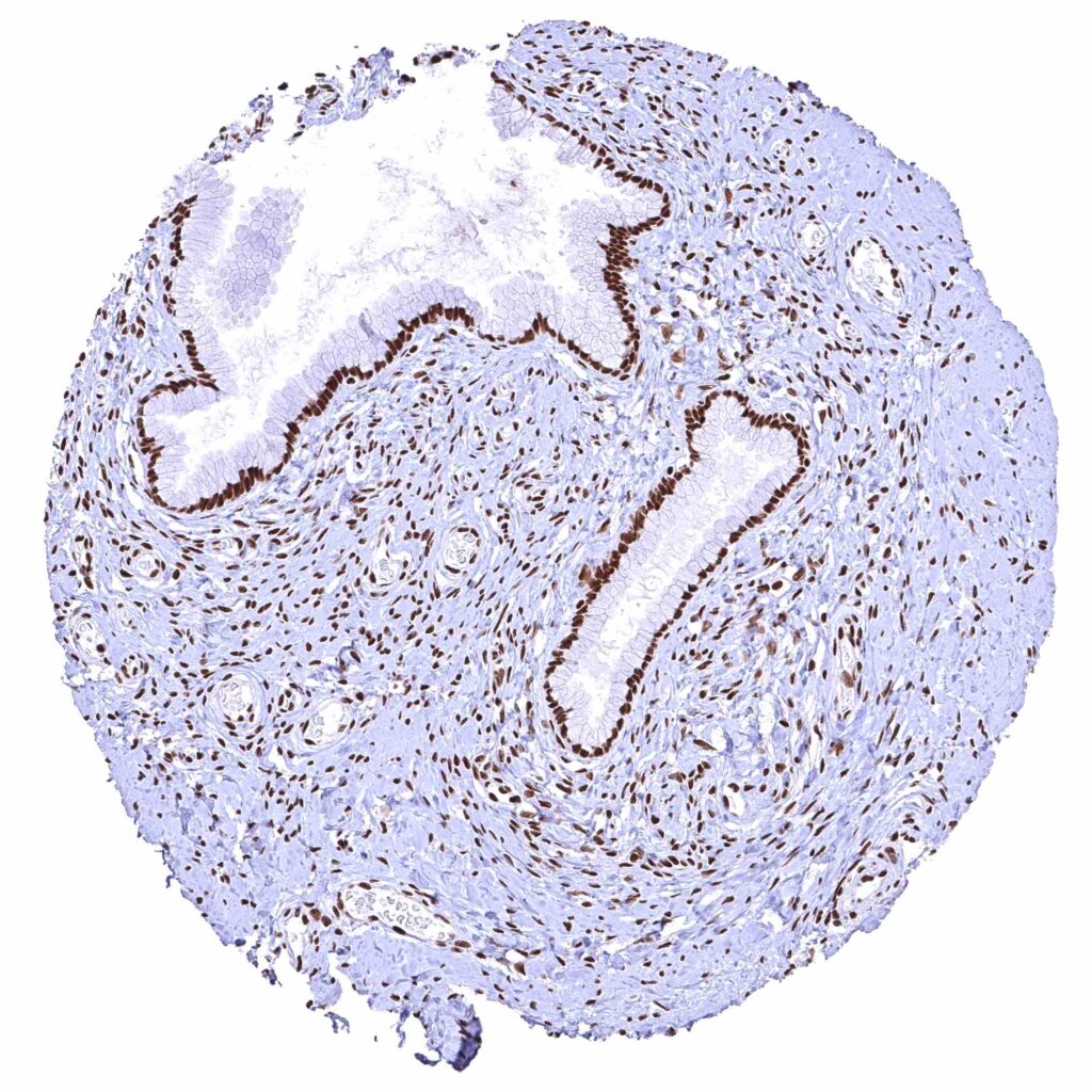 Ovary, stroma – Strong nuclear BRD4 staining of stroma cells.