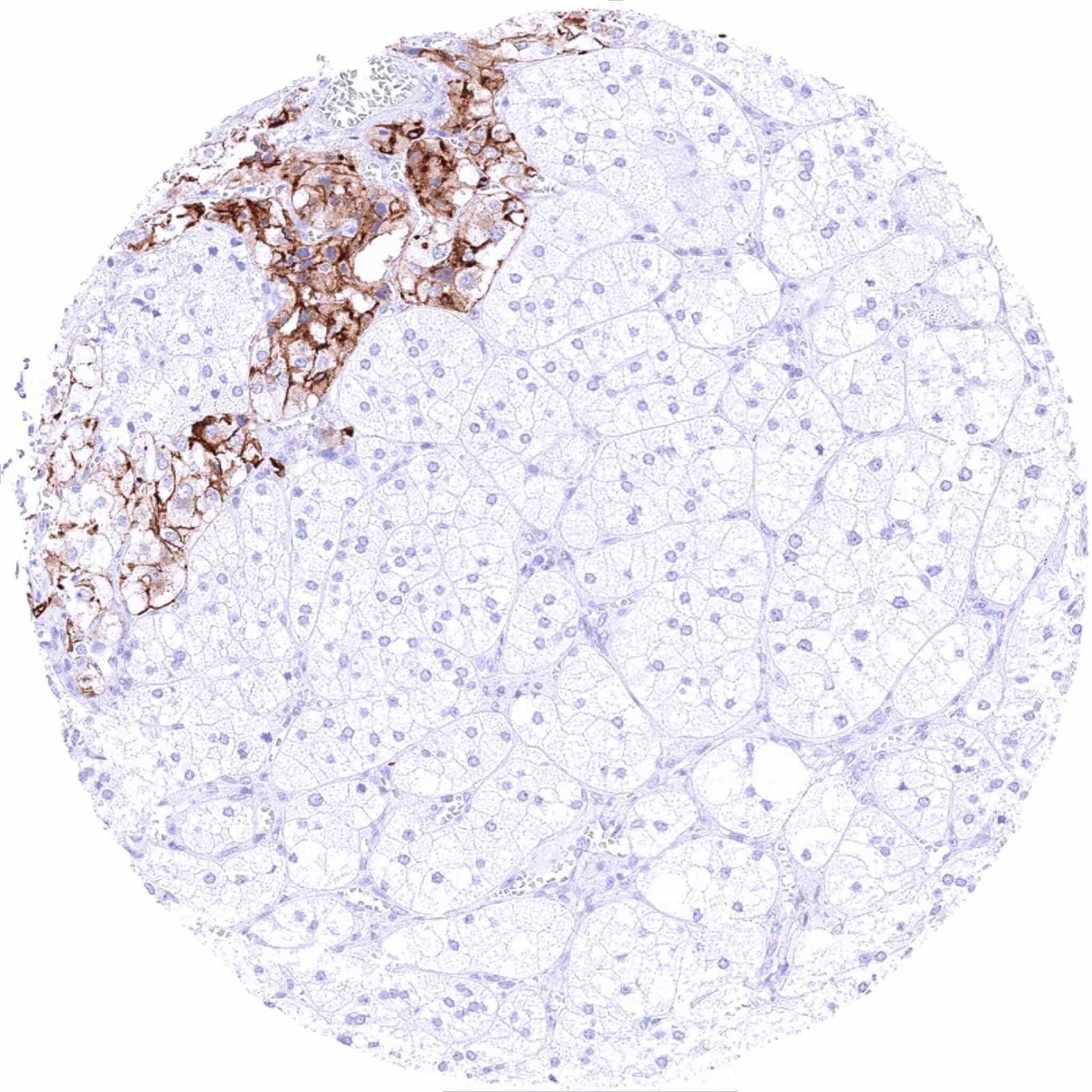 Adrenal gland – Strong, predominantly membranous L1CAM staining of a medullary cells