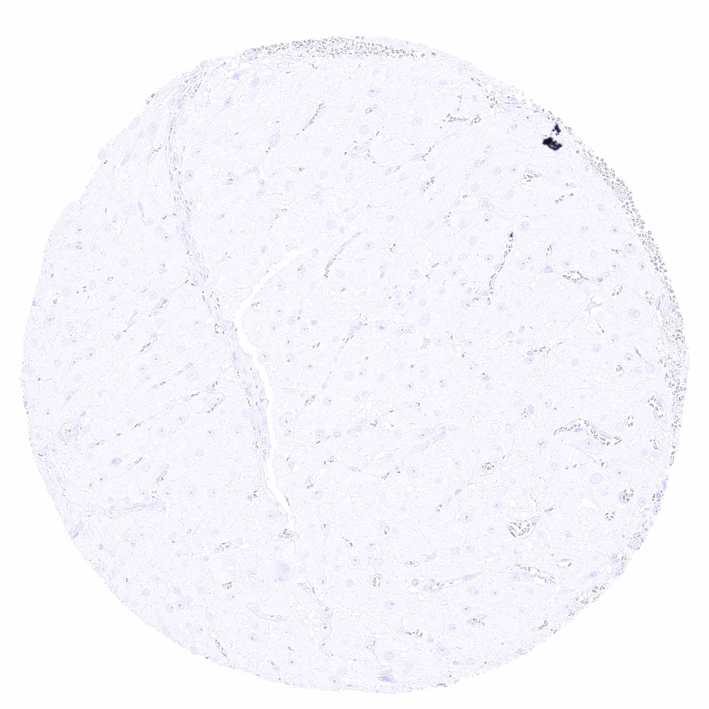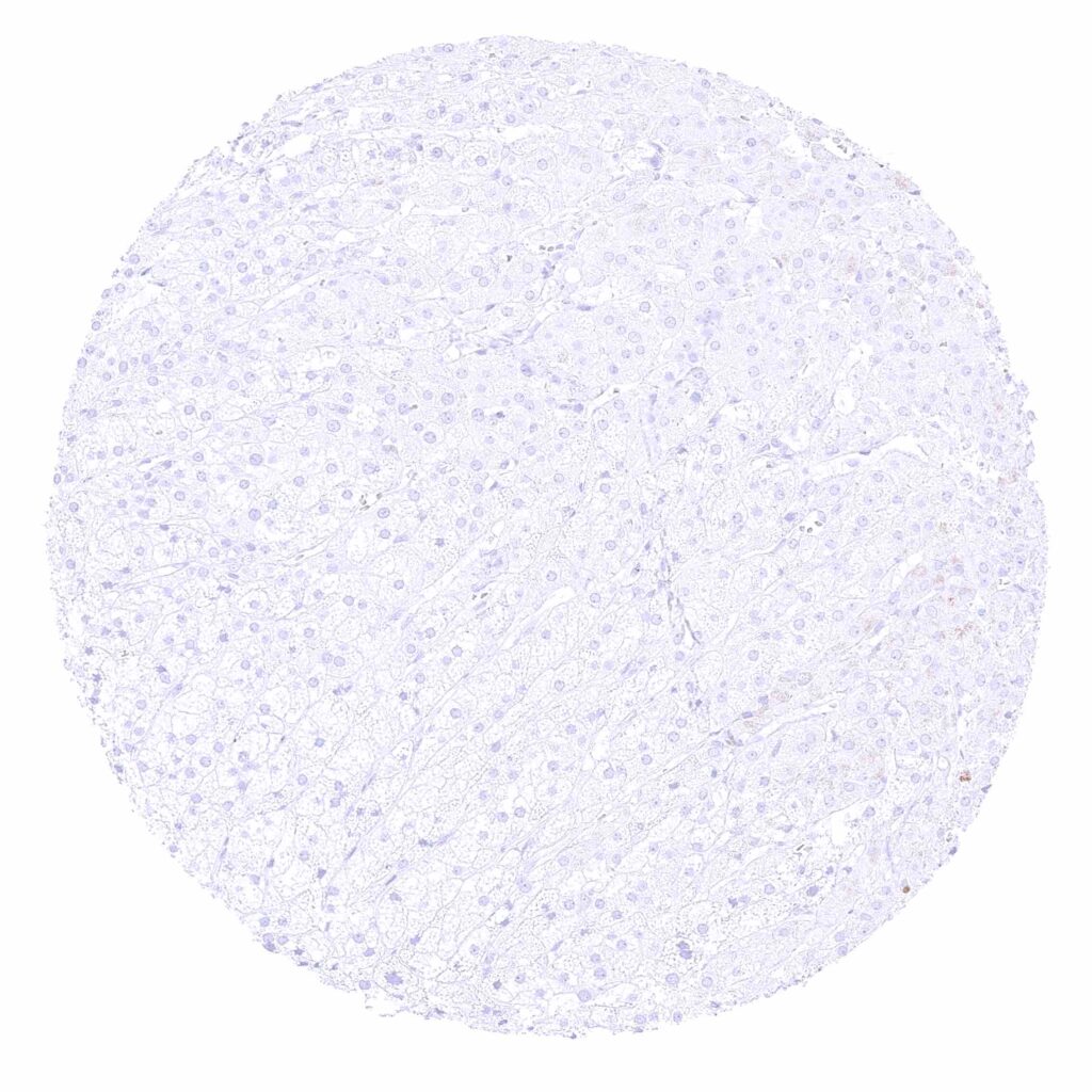 Liver – Distinct membranous CD35 positivity of Kupffer cells.