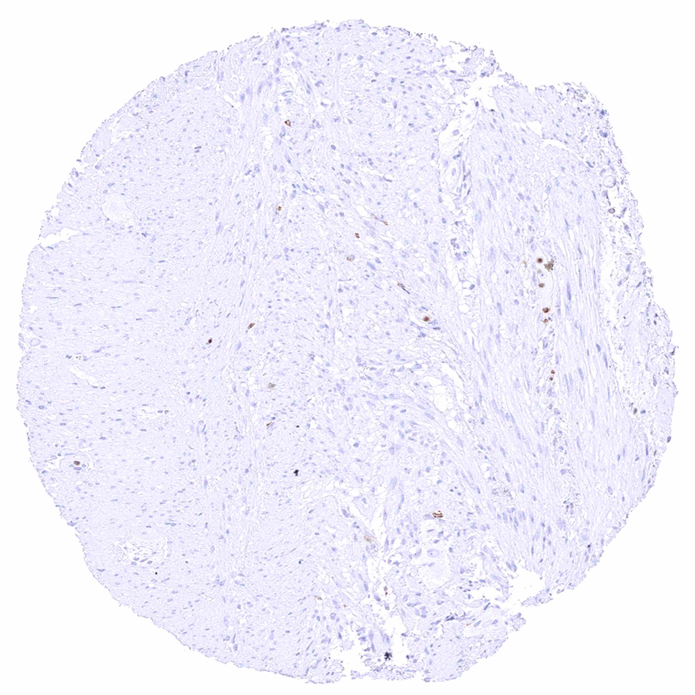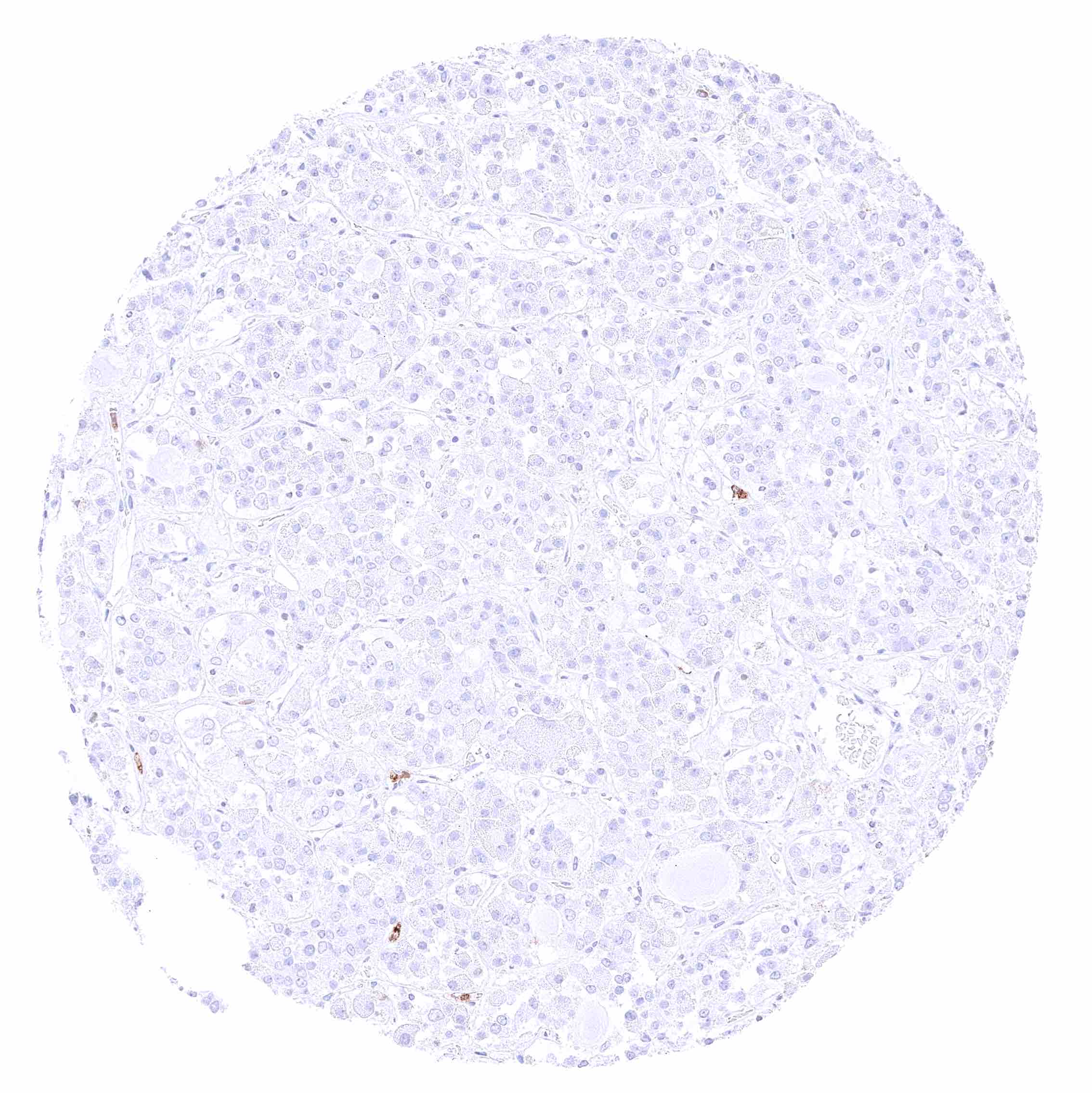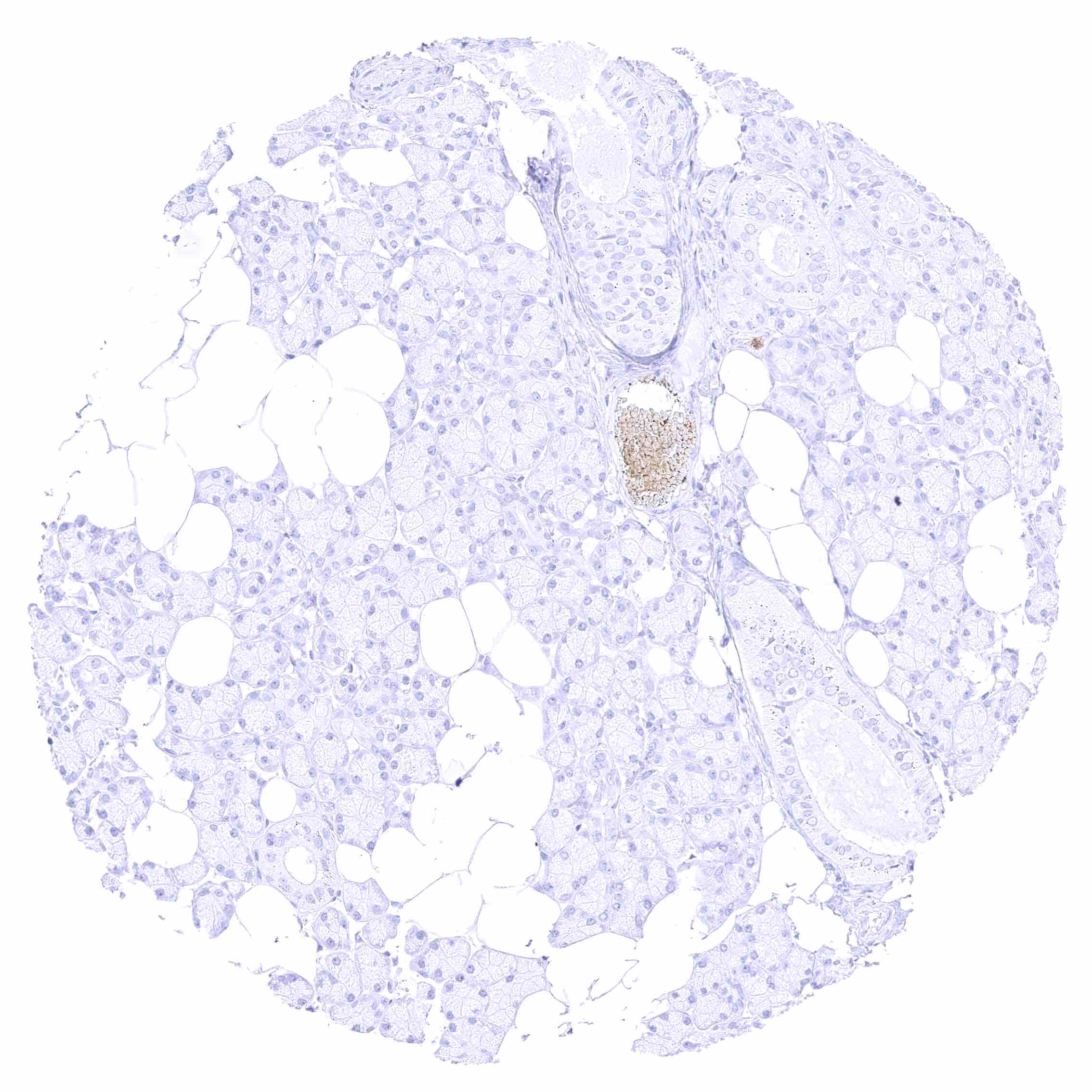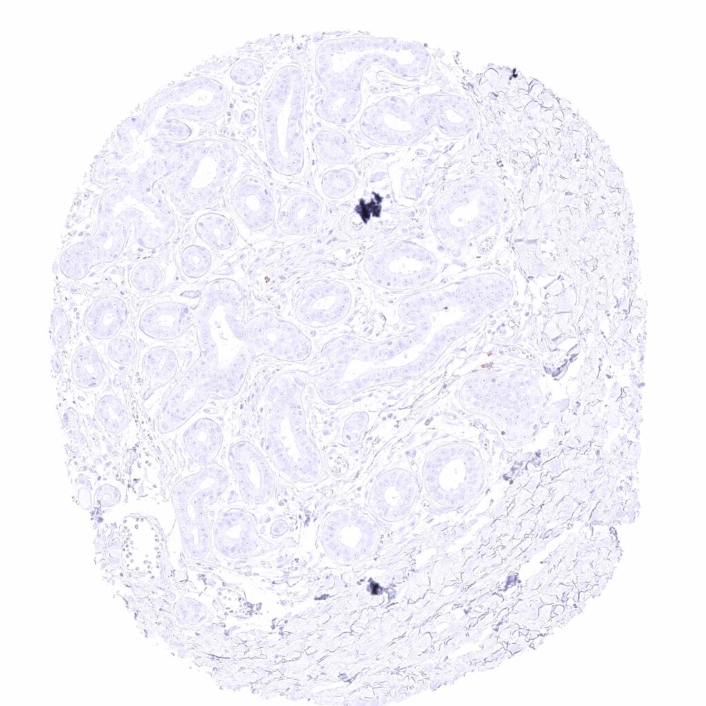 Parotid gland – Weak membranous CD35 staining of erythrocytes in this sample.