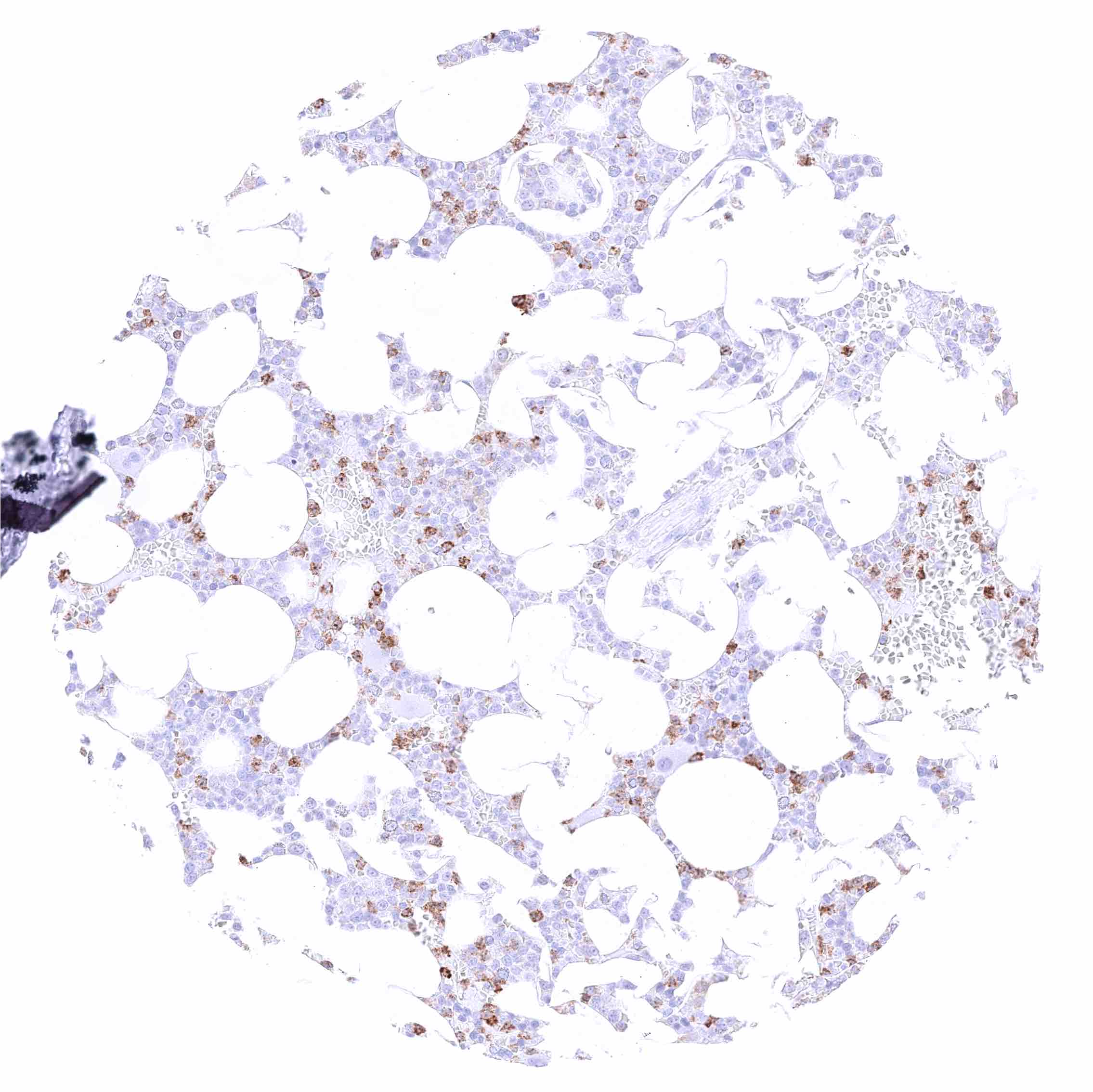 Bone marrow – Strong membranous CD35 staining of a subset of cells.
