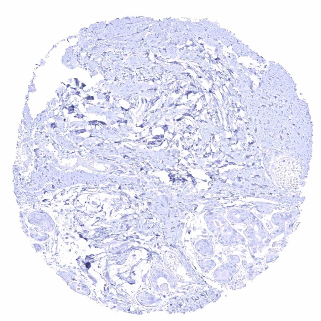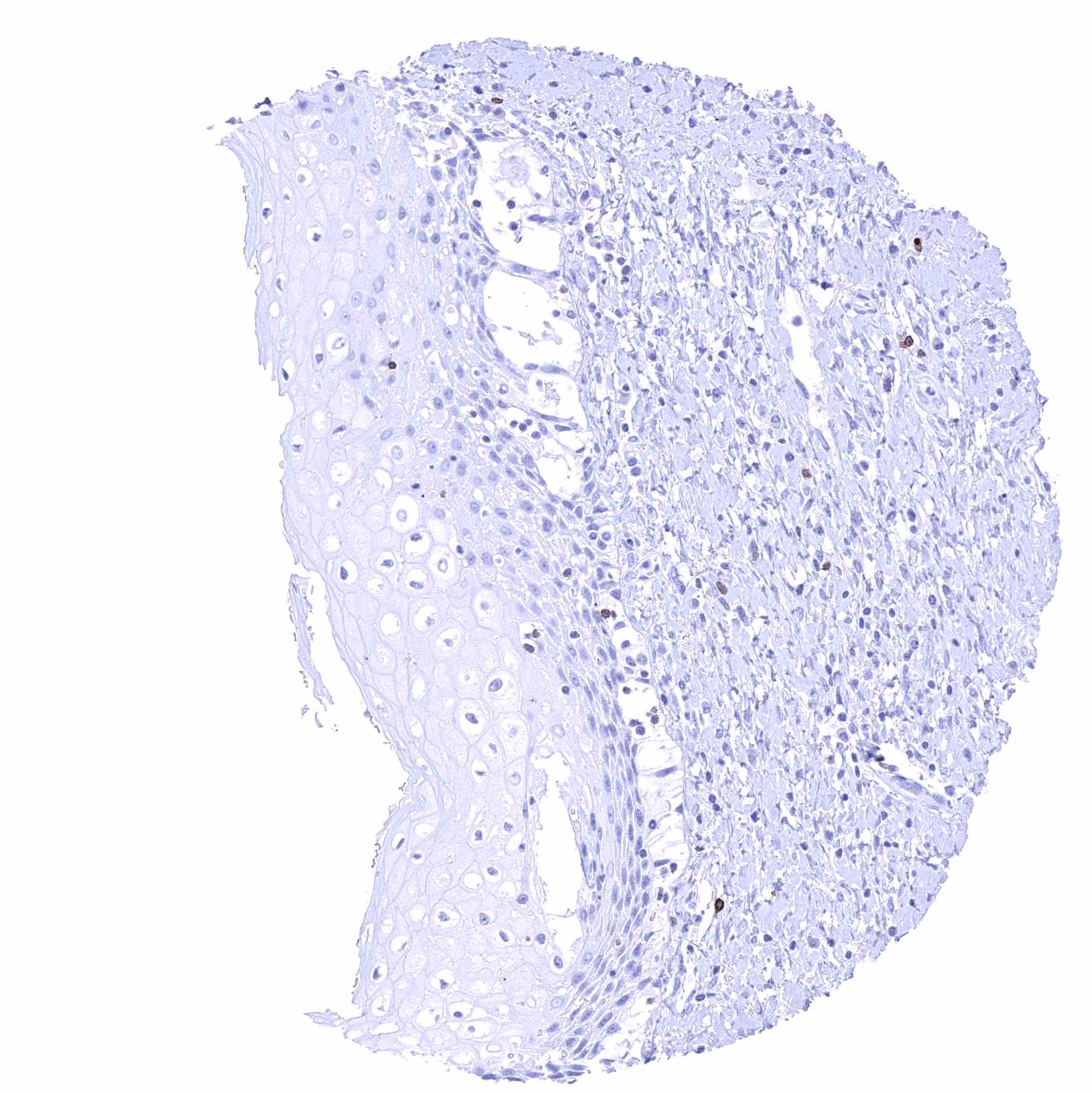 Skin – Membranous CD70 staining of few intraepithelial cells (probably lymphocytes).