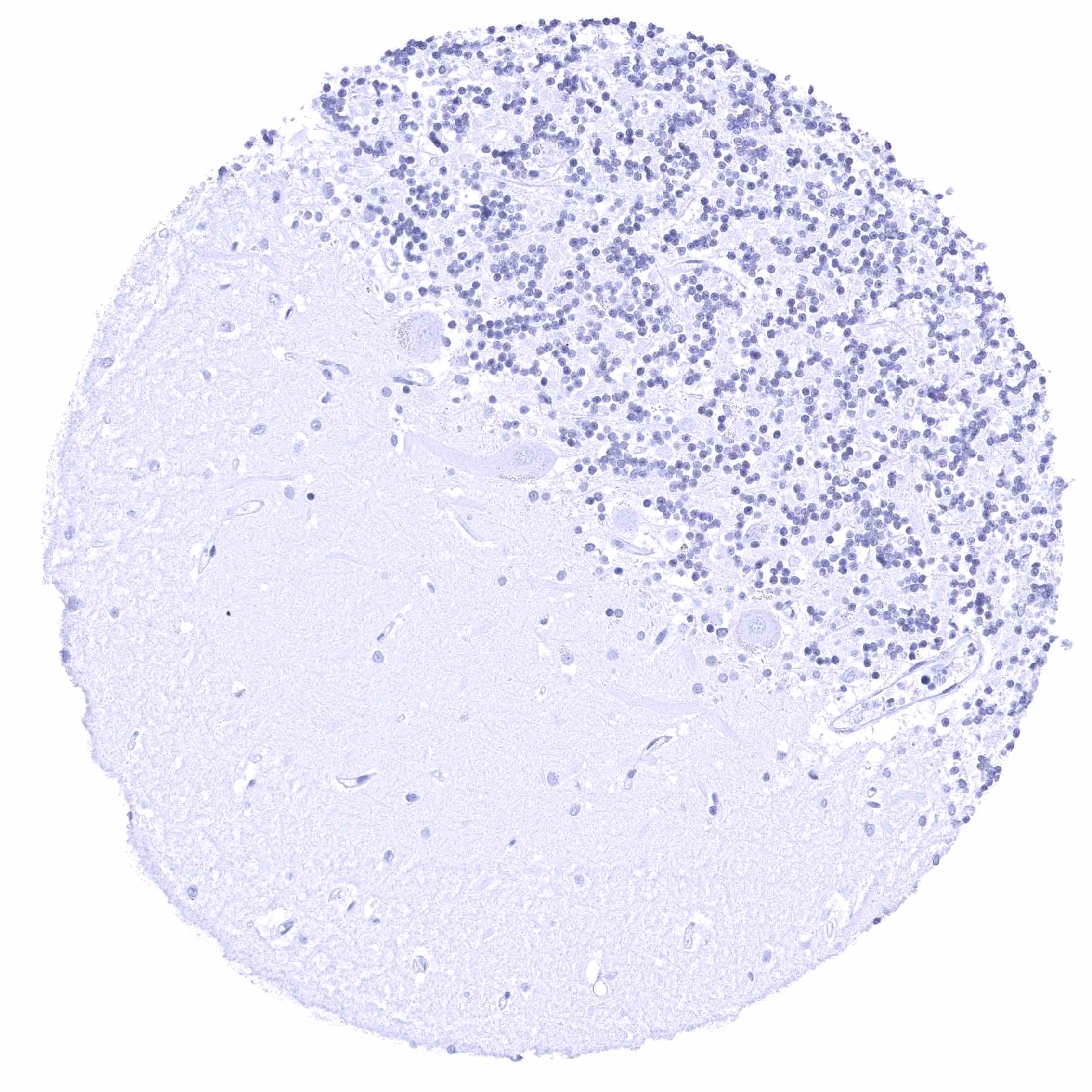 Appendix, mucosa – Epithelial cells are CD70 negative. Distinct CD70 positivity of a fraction of lymphocytic cells.