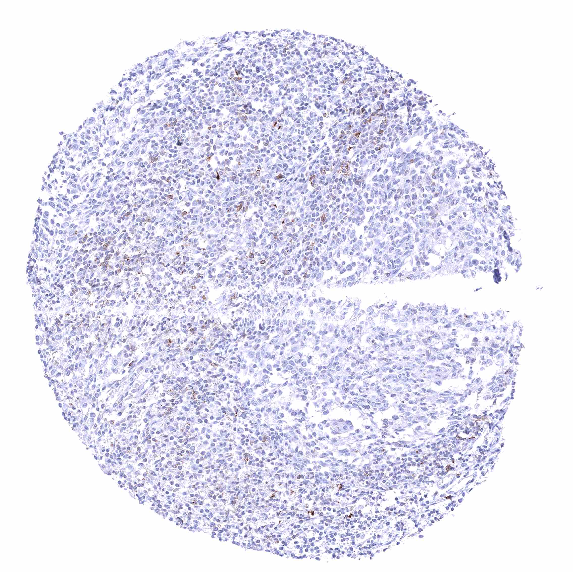 Spleen – Membranous CD70 staining of variable intensity in a fraction of cells.