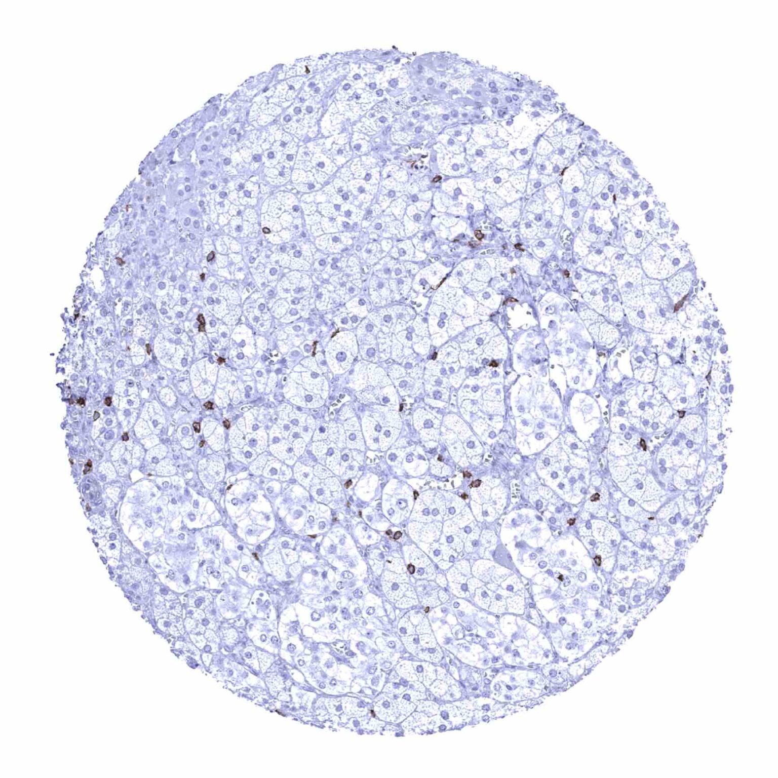 Uterus, endocervix - Scattered CD8 positive lymphocytes are seen
