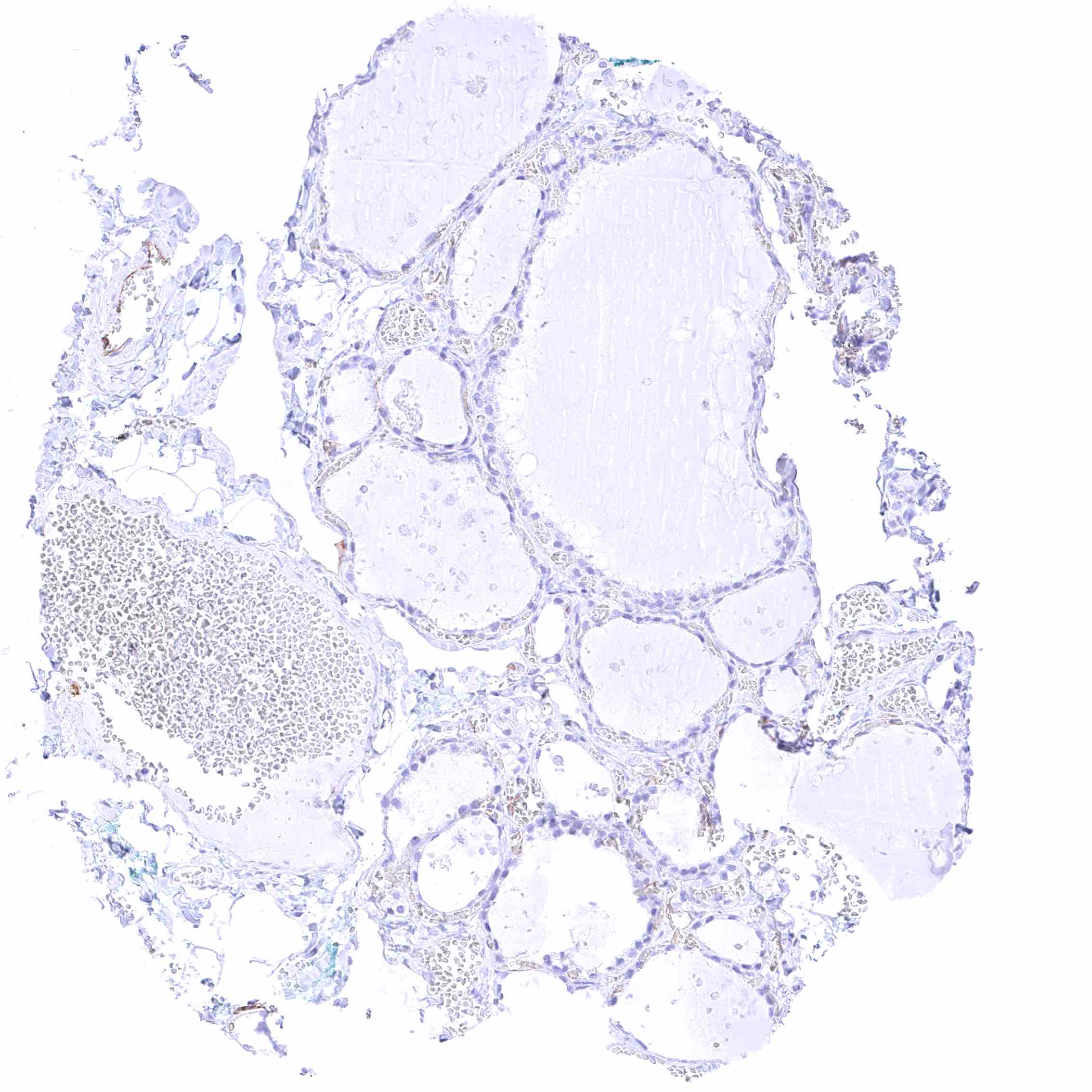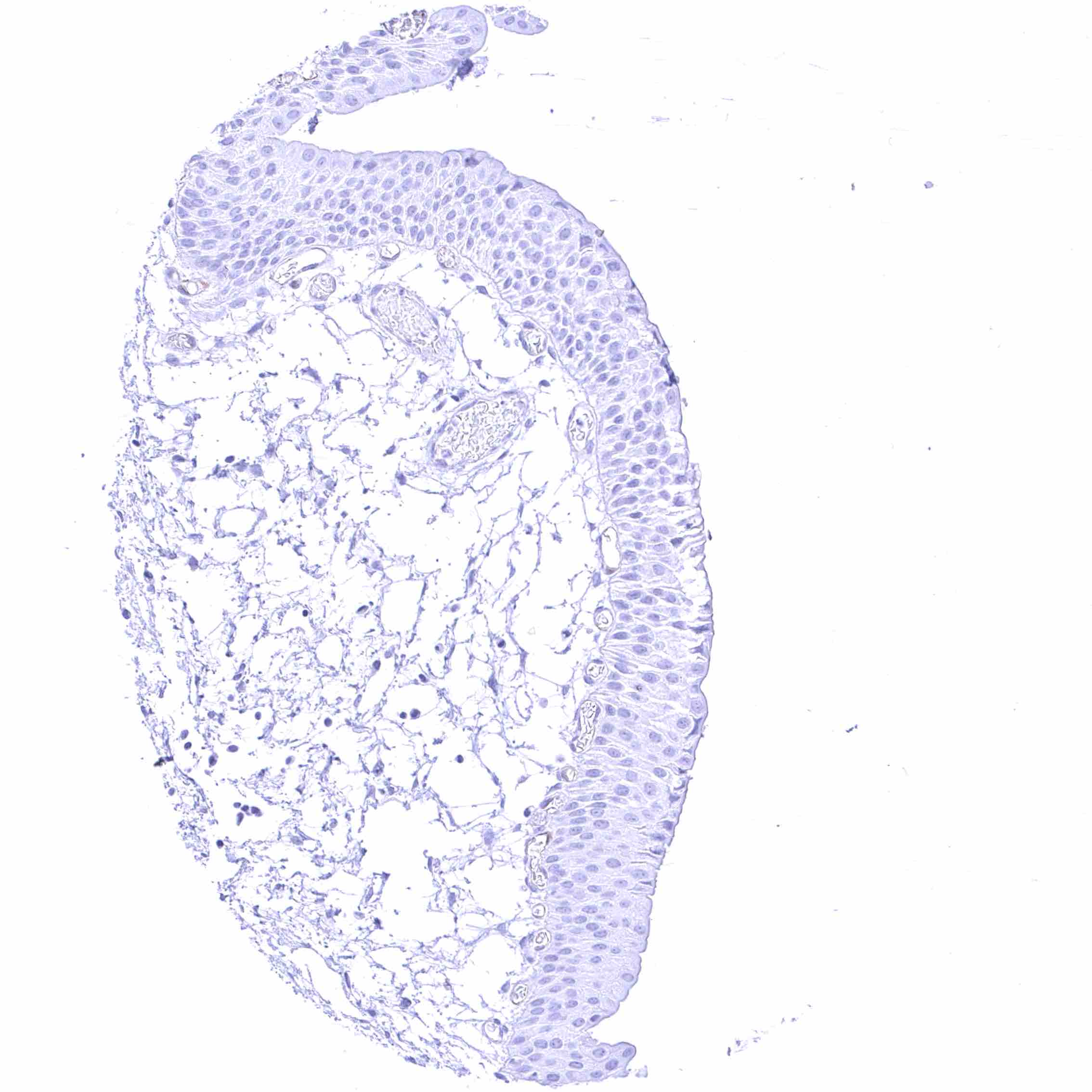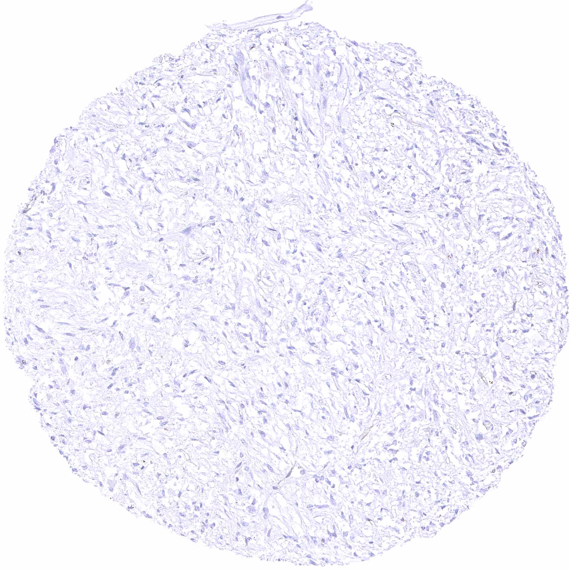 Uterus, endometrium (secretion) – Absence of PODXL staining in this sample.