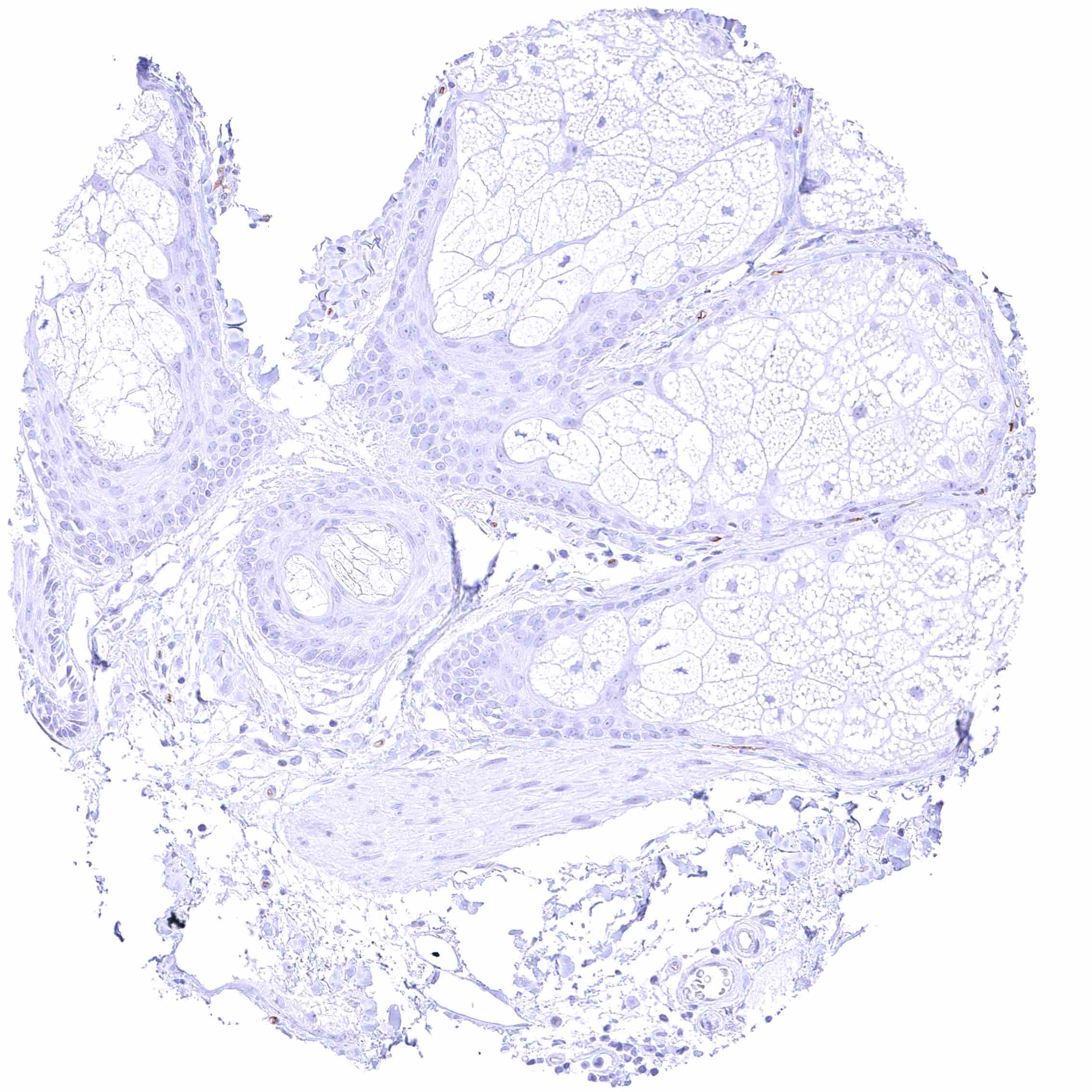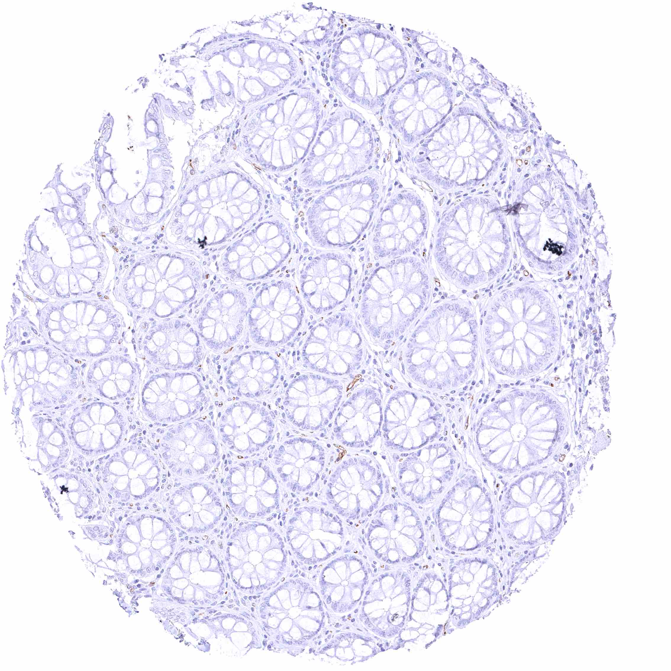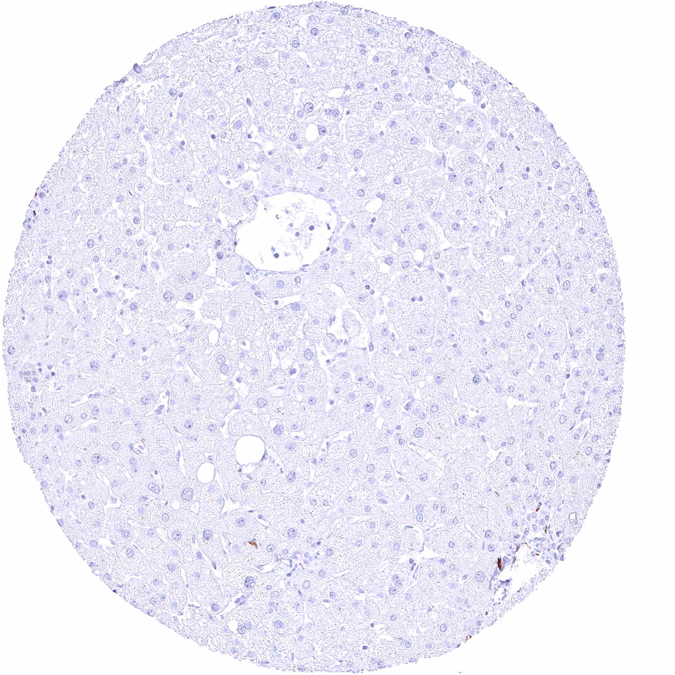 Uterus, endometrium (secretion) – Absence of PODXL staining in this sample.