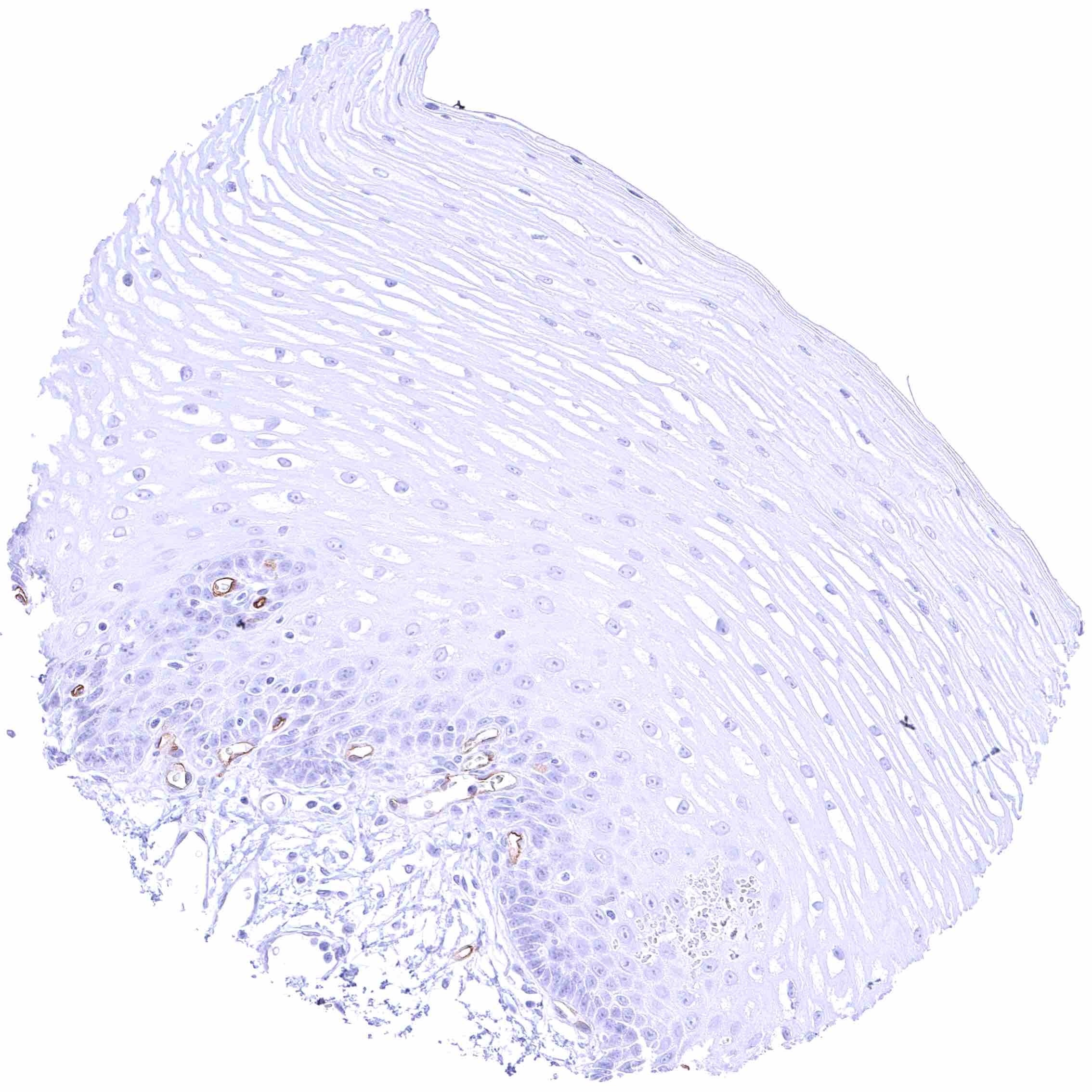 Esophagus, squamous epithelium – PODXL of endothelial cells of small vessels.