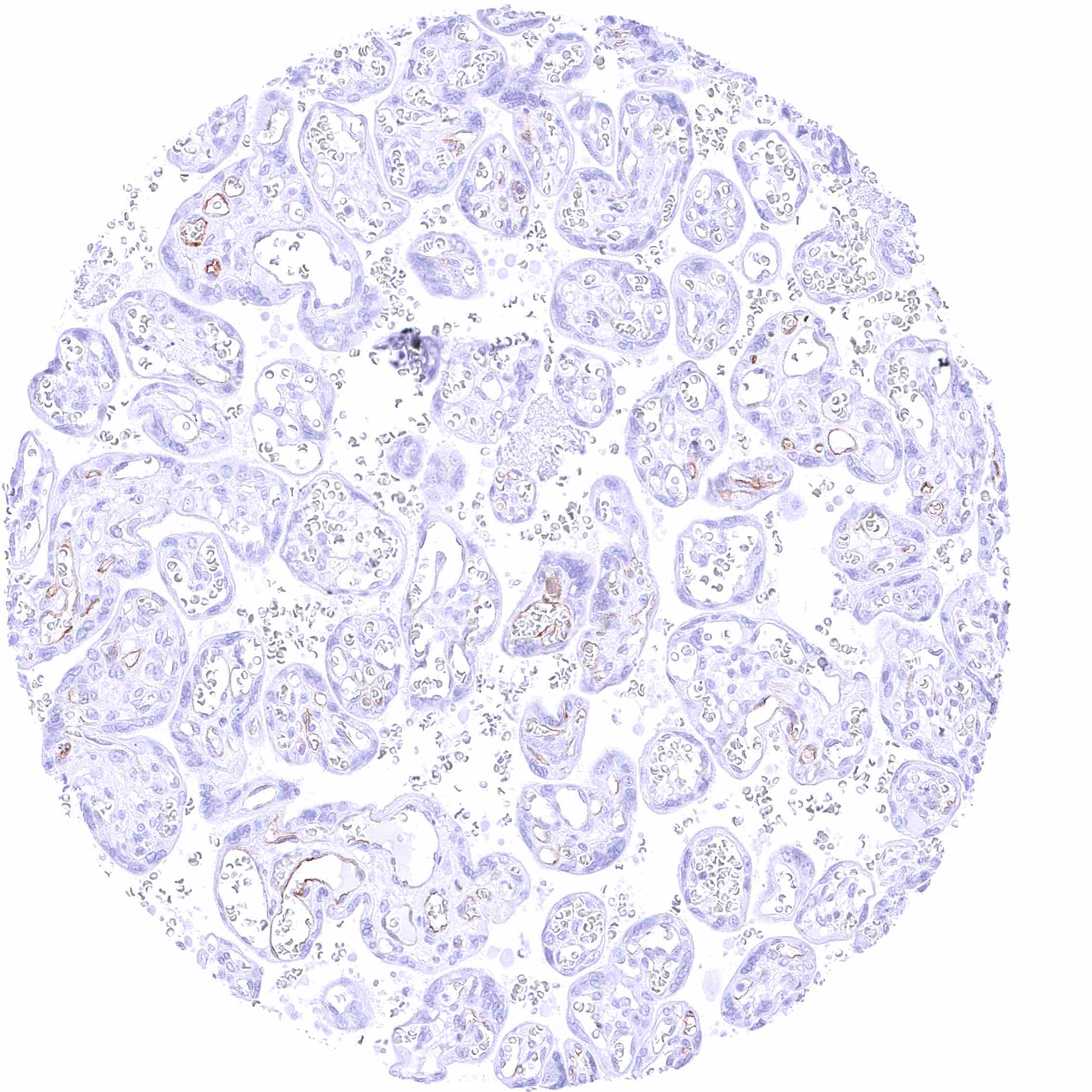 Placenta (amnion and chorion) – PODXL of endothelial cells of small vessels.