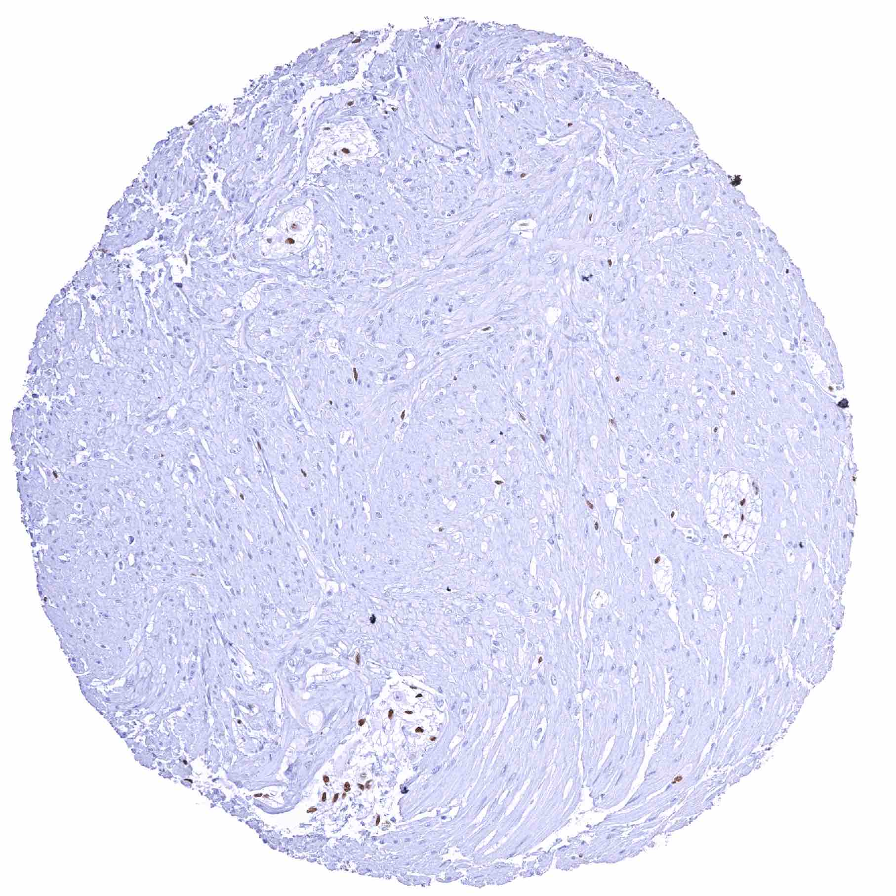 Stomach, muscular wall – Strong SOX2 positivity of few spindle shaped (neural_) cells in the muscular wall