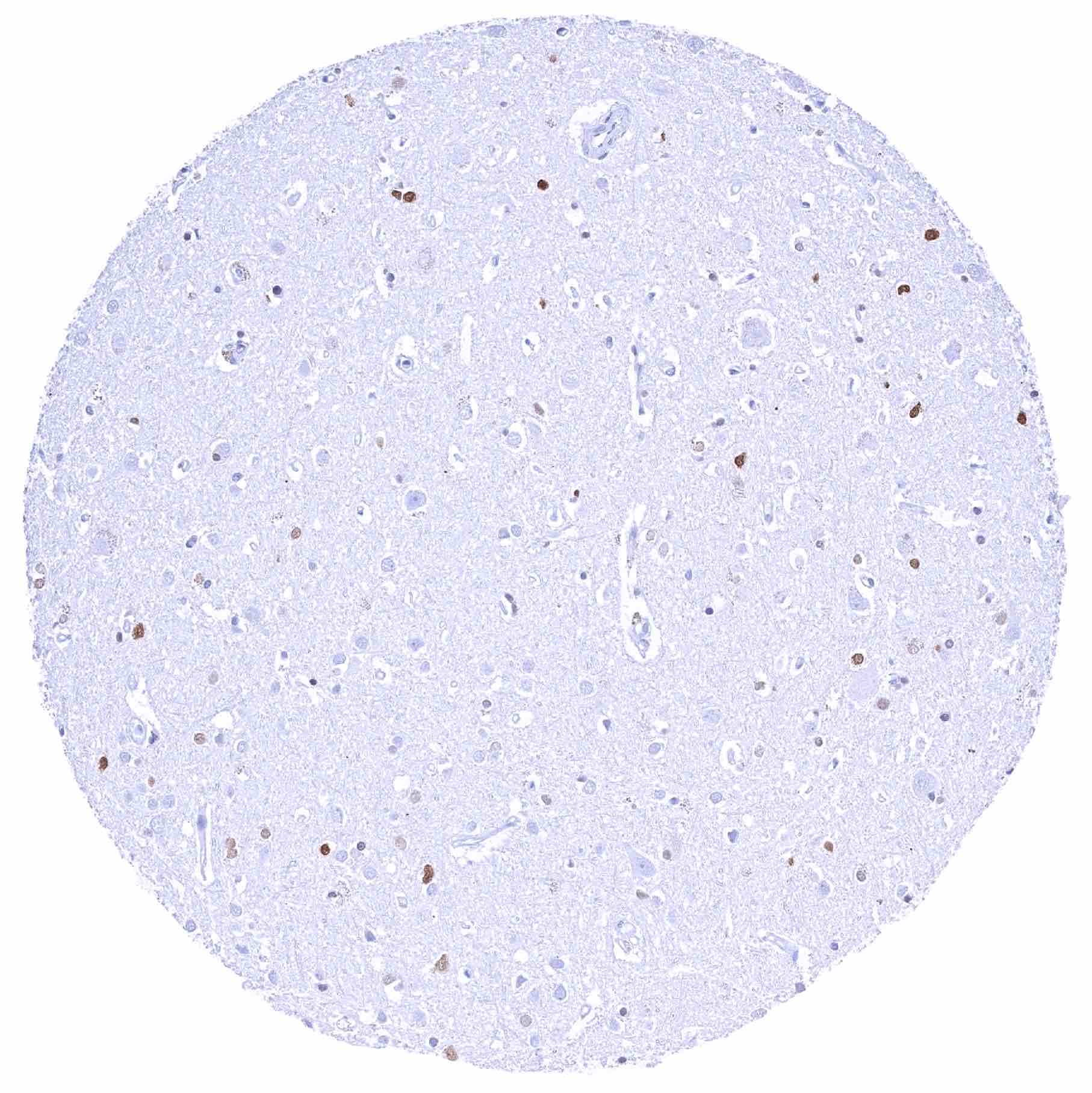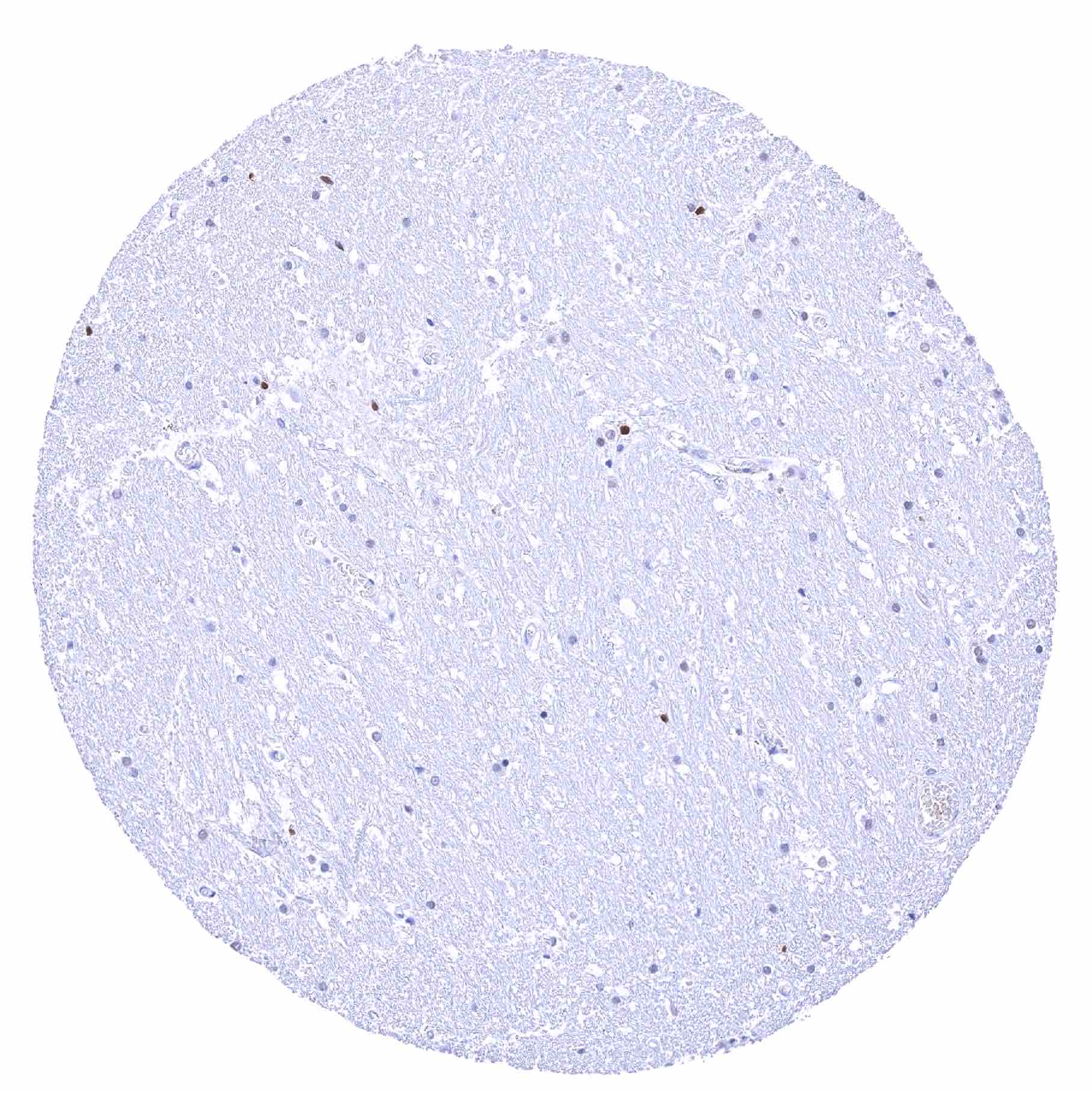 Cerebrum, grey matter – Moderate to strong SOX2 positivity of a fraction of glial cells