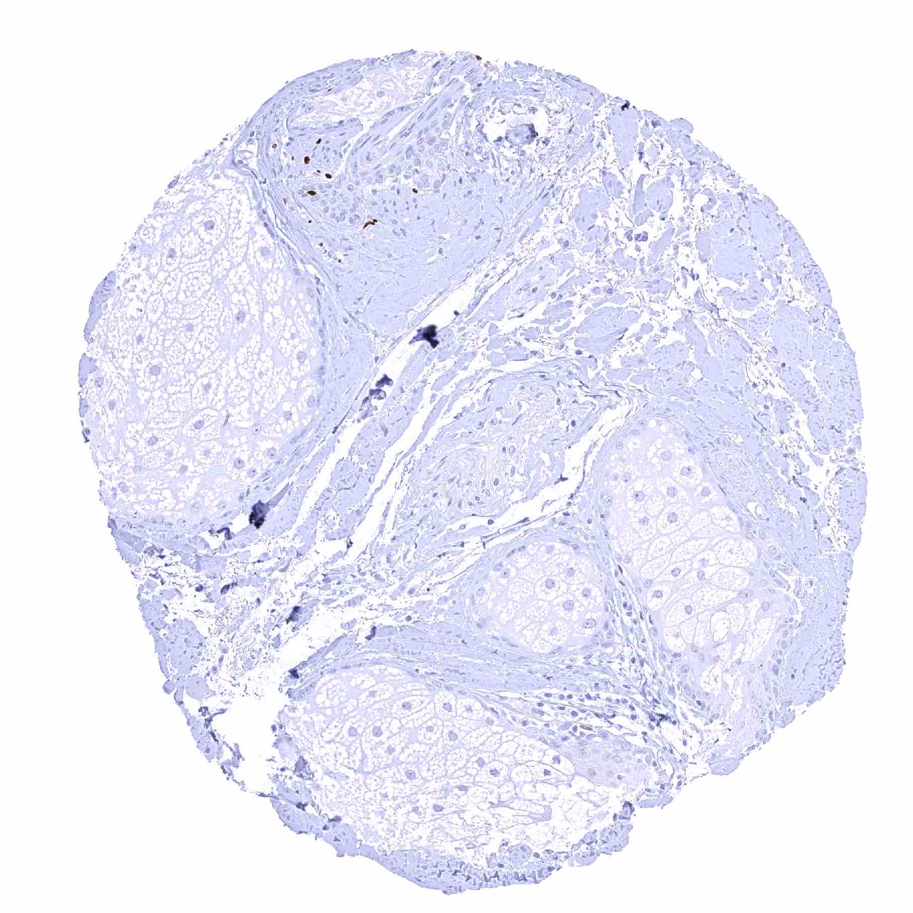 Skin, hairfollicel and sebaceous glands – Strong SOX2 positivity few hair follicle-adjacent spindle shaped (neural_) cells in the dermis