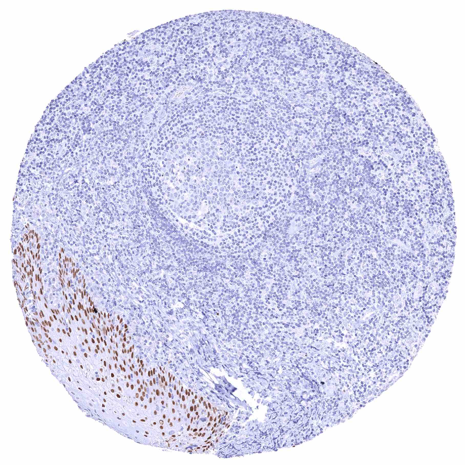 Tonsil – Weak to strong SOX2 positivity of a fraction of squamous epithelial cells in crypts