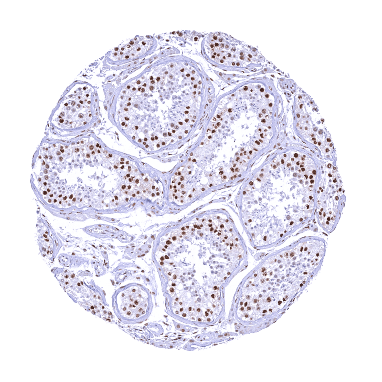 Positive control = Testis: 53BP1 staining should be strong in spermatogonia but decrease with maturation of germ cells.