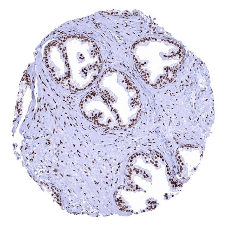 Androgen receptor immunostaining most prominently occurs in organs of the male genital system. In the prostate, seminal vesicle, and the epididymis, luminal, basal, and stroma cells stains strongly. In the testis, Sertoli, Leydig and stromal cells are AR positive. A moderate to strong staining is also seen in sebaceous glands and in several tissues of the female genital system. Here, a stromal and epithelial cell staining occurs in the myometrium, endometrium (stroma>epithelium), and endocervix of the uterus, the fallopian tube (stromal cells and intercalated cells), and the ovary (follicular cells, theca cells, stromal cells). A moderate AR immunostaining is also seen in hepatocytes, basal cells of the respiratory epithelium, a fraction of tubuli (mostly distal) and podocytes of the kidney, breast glands, and skeletal muscle cells. In squamous epithelium and transitional epithelium of the anal mucosa, a weak to moderate staining of a fraction of cells occurs, predominantly in the lower half of the epithelium. AR is also detectable in the basal cell layers of tonsil crypt epithelium and in a fraction of thymic epithelial cells. A weak AR immunostaining also occurs (at least occasionally) in gallbladder epithelium, excretory and intercalated ducts of the pancreas, glandular cells of salivary glands, gastric glands, decidua cells, placenta trophoblastic cells (predominantly in the first trimenon), thyroid glandular cells, adenohypophysis (few cells with weak staining), urothelium, stroma of the glans penis, smooth muscle of kidney pelvis, and in a fraction of cells in the aortic wall. AR immunostaining is completely absent in the adrenal gland, corpus luteum of the ovary, hematopoietic and lymphoid tissues, many mesenchymal tissues, surface epithelium of the gastrointestinal tract, lung, neurohypophysis, and the brain.