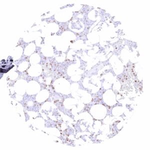 | Bone marrow/ lymphoid tissue | Bone marrow | Strong membranous CD35 staining of a subset of cells. |