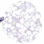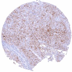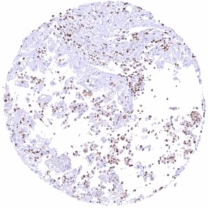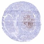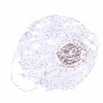 Freshly cut sections should be used (less than 10 days between cutting and staining). Heat-induced antigen retrieval for 5 minutes in an autoclave at 121°C in pH 7,8 Target Retrieval Solution buffer. Apply MSVA-035M at a dilution of 1:150 at 37°C for 60 minutes. Visualization of bound antibody by the EnVision Kit (Dako, Agilent) according to the manufacturer’s directions.