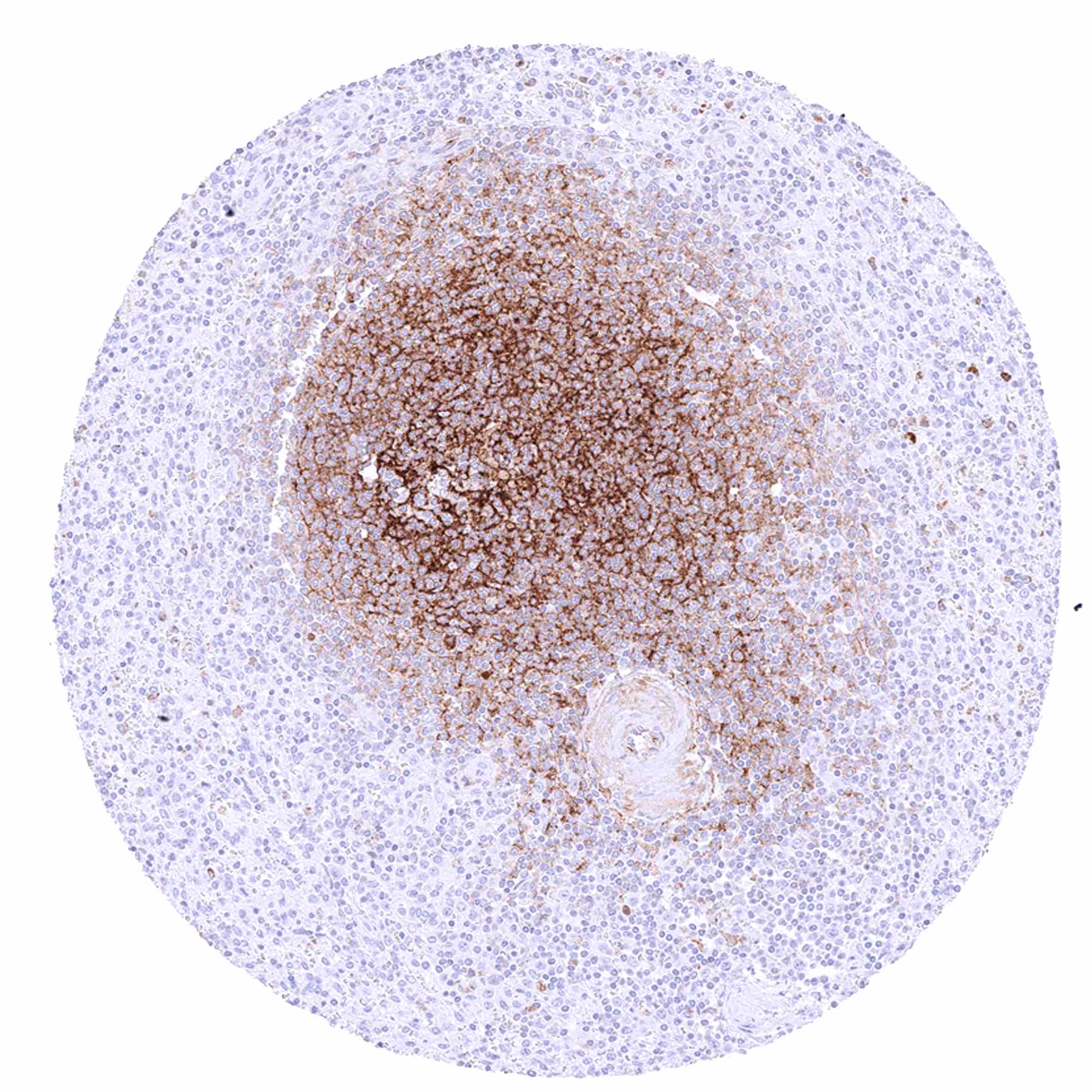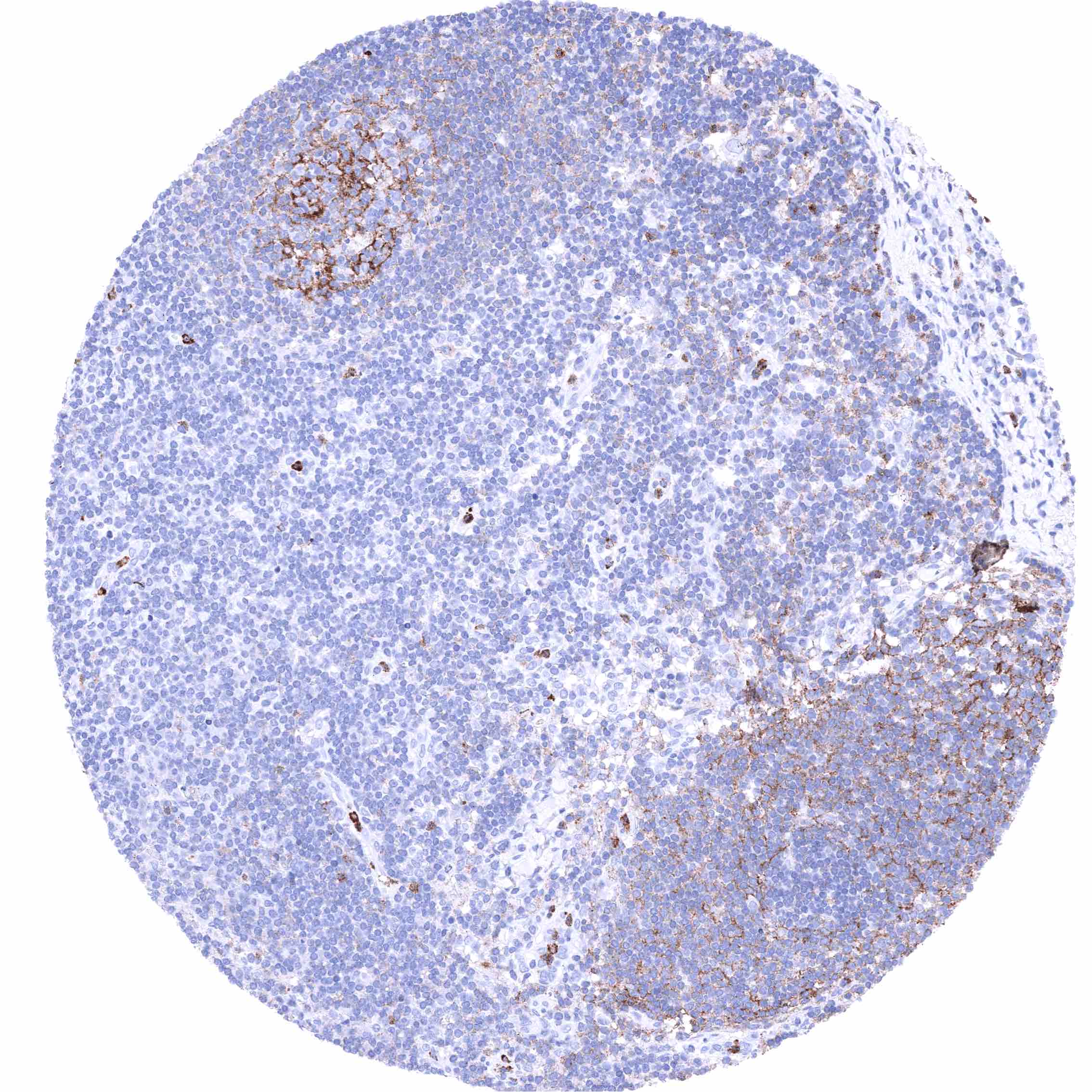 Positive control = Tonsil: A strong CD35 must be seen in follicular dendritic cells while there is a less intense CD35 staining of a subset of lymphocytes.