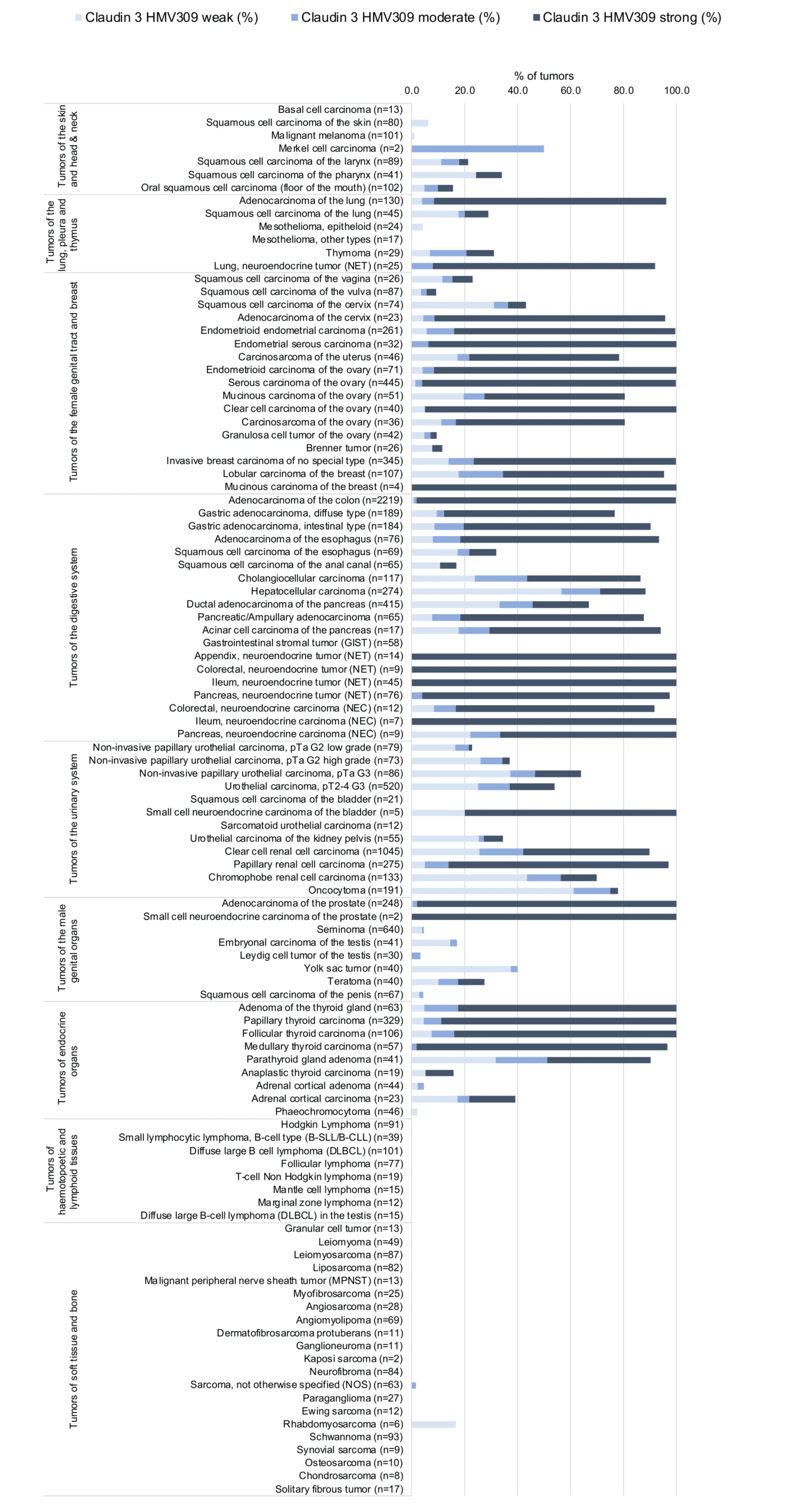 1. Claudin 3 staining in tumors “organ-specific” with antibody HMV309