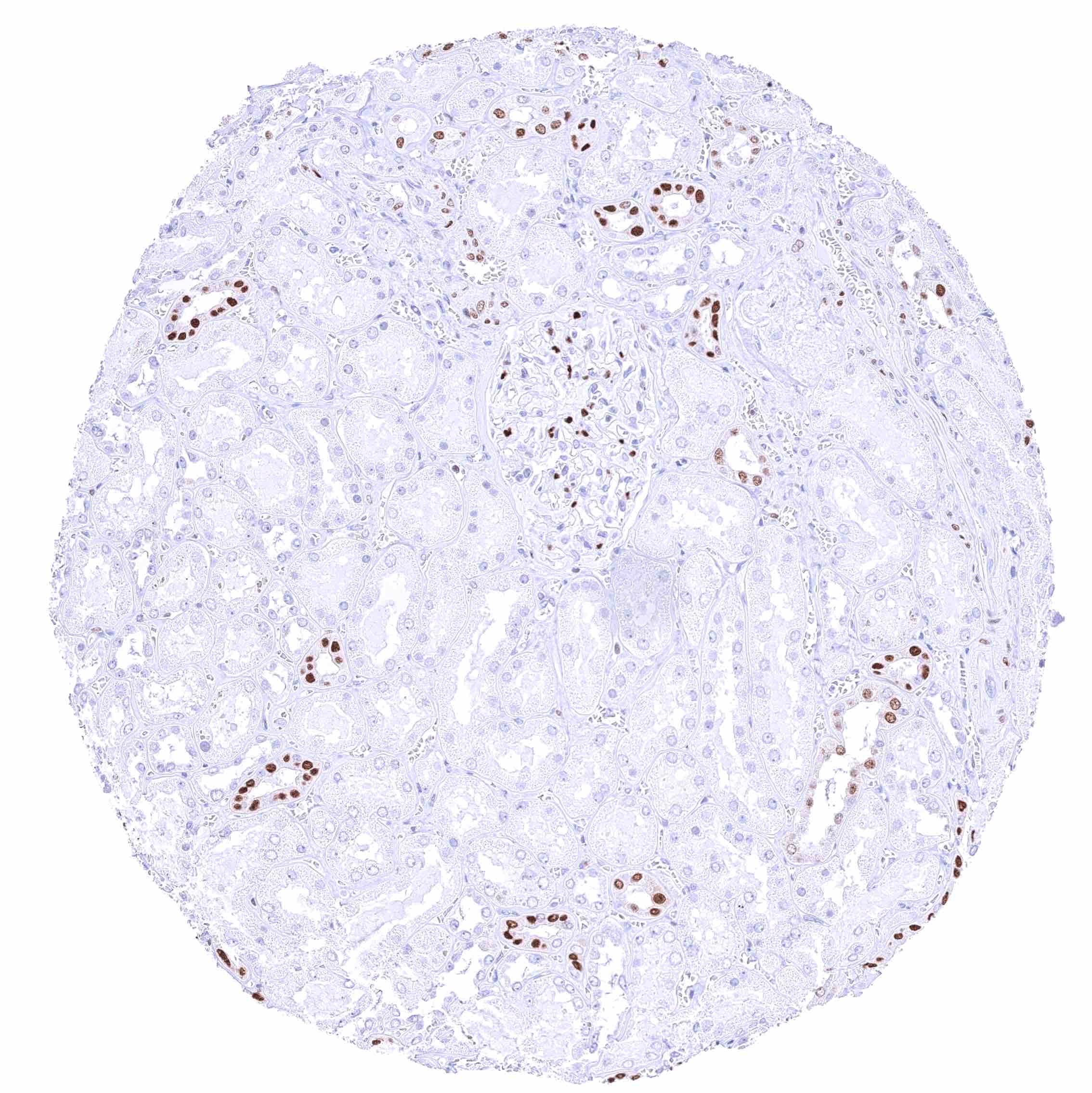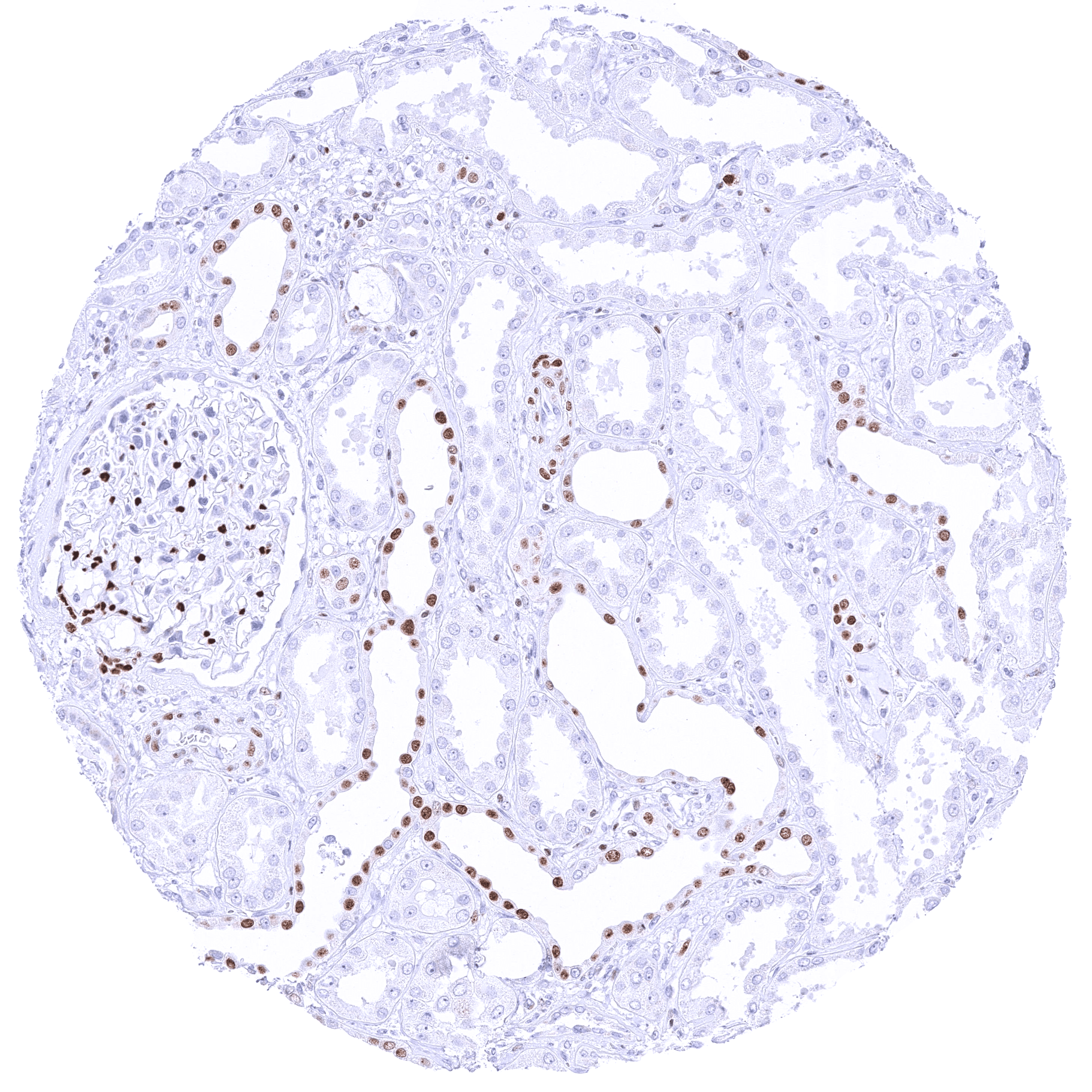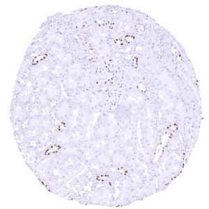 -Kidney: A moderate to strong nuclear staining reaction should be seen in a fraction of collecting duct cells and podocytes in glomeruli.