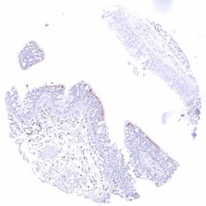 Duodenum | Negative. A (cross-reactive) granular cytoplasmic GATA3 positivity of epithelial cells can occur. | |