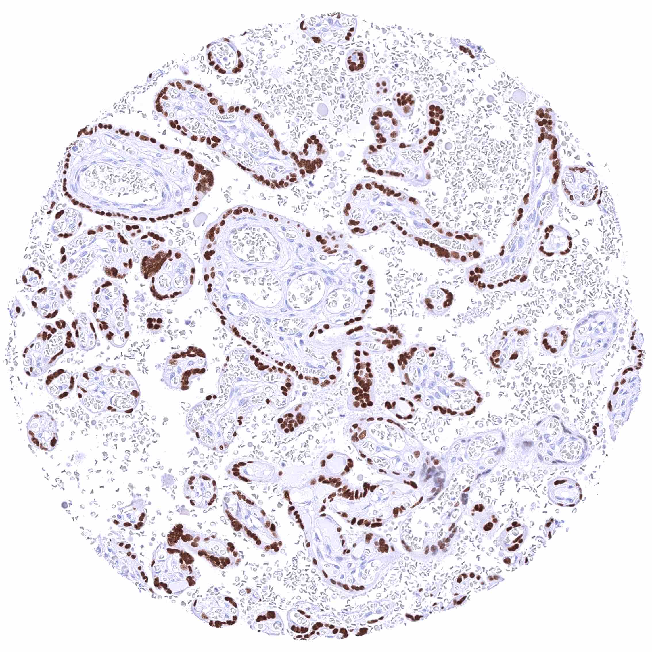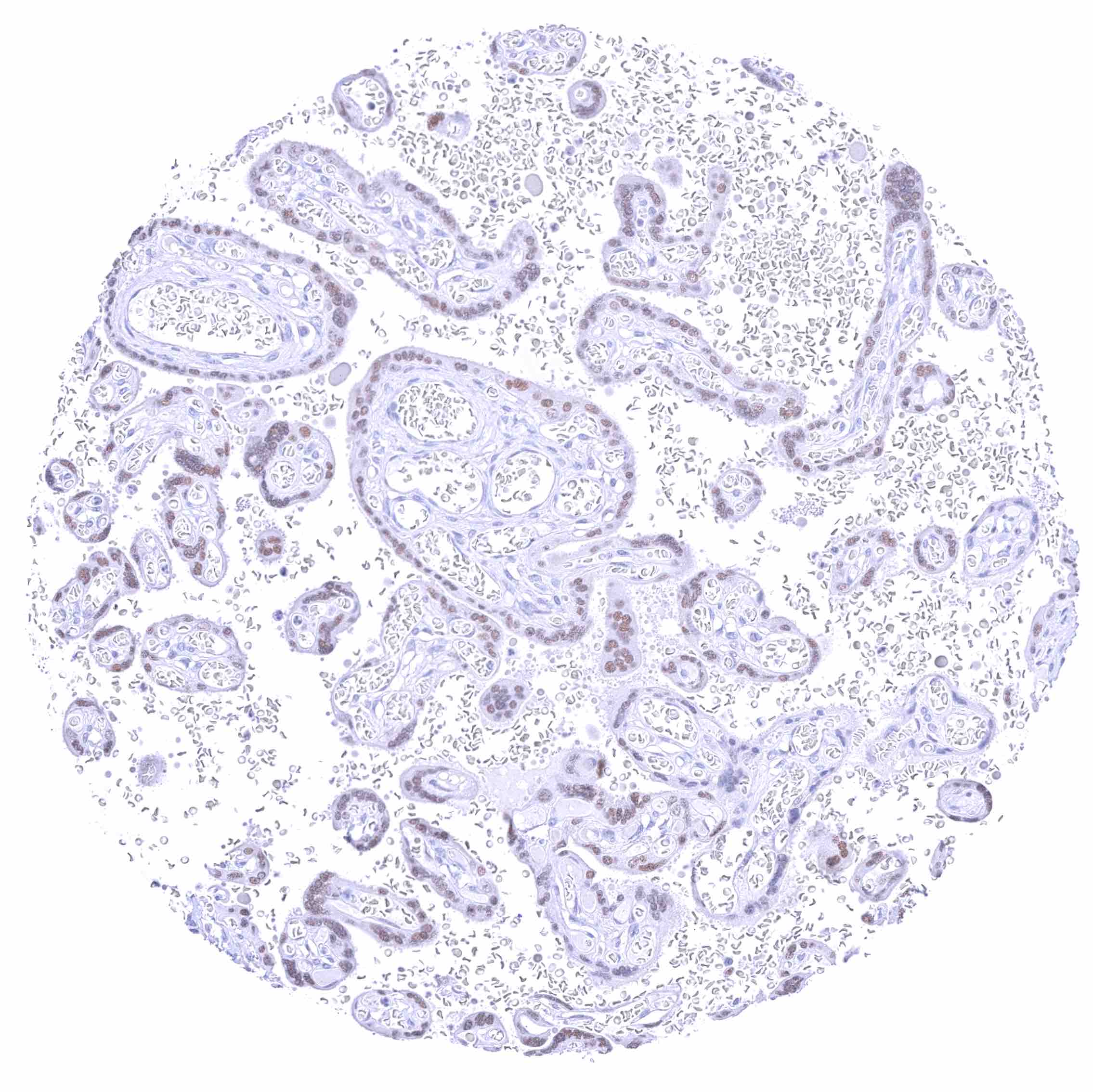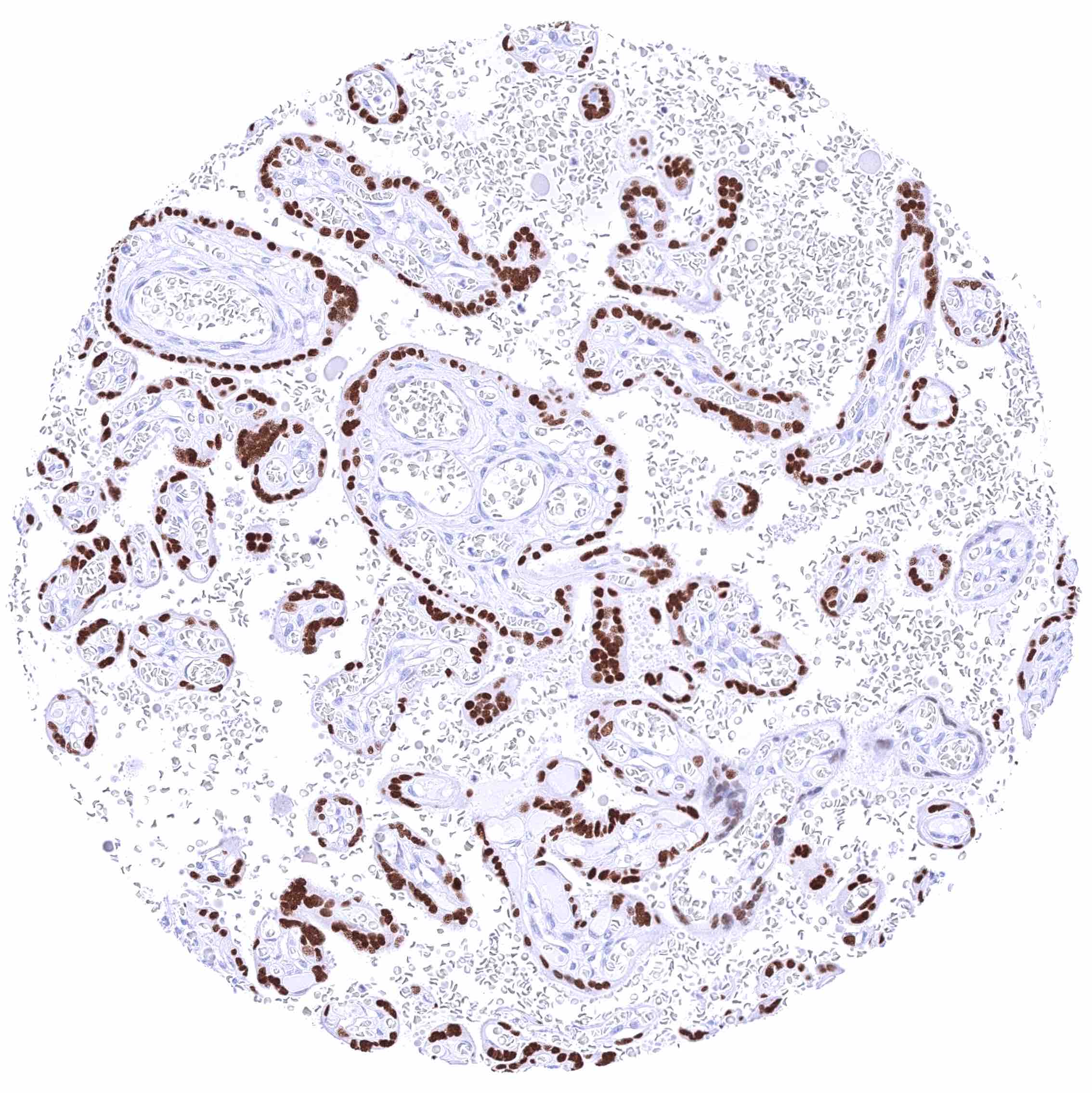 Placenta mature | Moderate to strong nuclear GATA3 positivity of trophoblast cells. | |