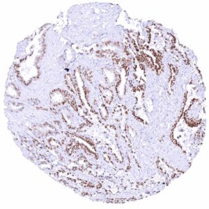 Male genital | Prostate | Weak to moderate nuclear GATA3 positivity in a large fraction of basal cells. |
