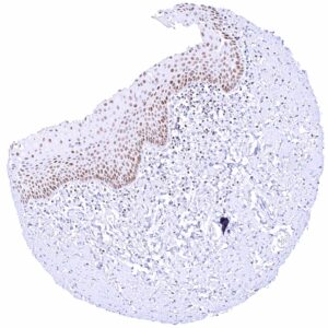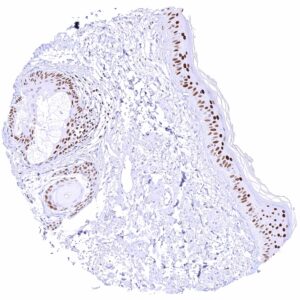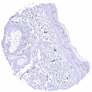 Skin | Epidermis | Moderate to strong GATA3 positivity of squamous epithelial cells. Staining is often more intense in the lower half of the epidermis. |