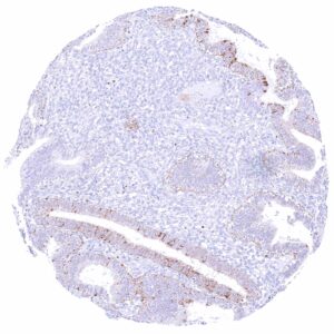 Uterus endocervix | Negative. A (cross-reactive) granular cytoplasmic GATA3 positivity of epithelial cells can occur. | |