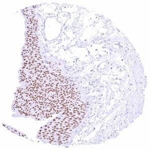 Urothelium | Strong nuclear GATA3 positivity in all urothelial cells. | |