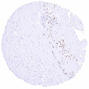 Uterus, endometrium | Negative. A (cross-reactive) granular cytoplasmic GATA3 positivity of endometrial epithelial cells can occur. | |