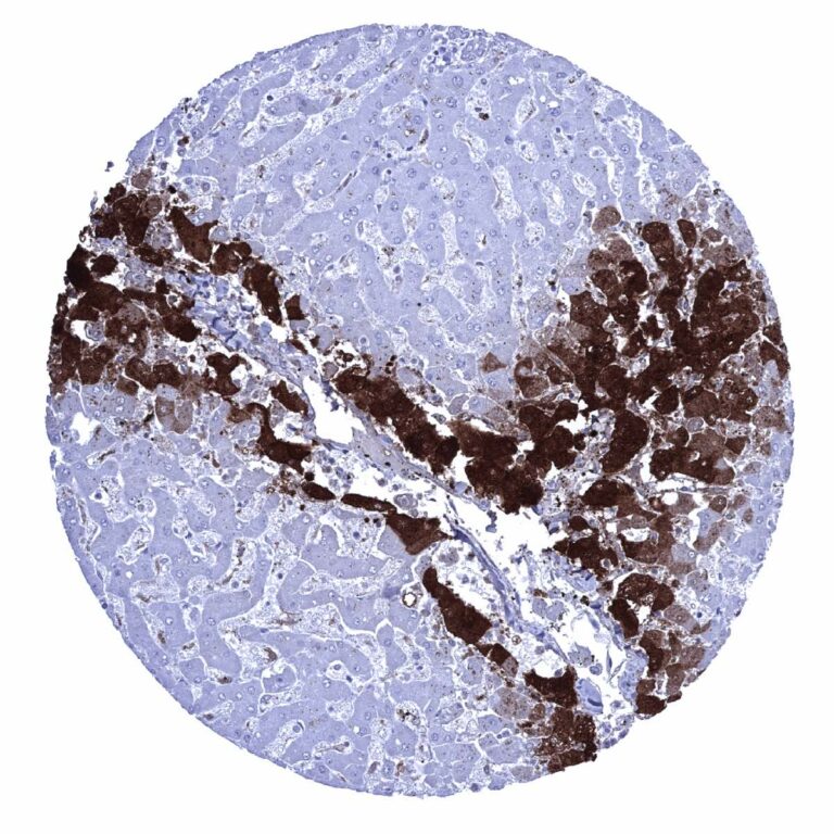 Positive control = Liver: A strong GS staining should be seen of centrilobular hepatocytes while staining is weak to moderate in Kupffer cells.