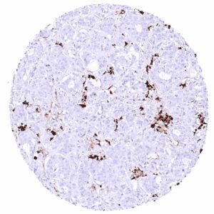 | Pancreas | Weak to moderate, nuclear and cytoplasmic GSTP1 positivity of acinar cells. Strong GSTP1 staining of intercalated and excretory ducts. Weak GSTP1 positivity of only a subset of islet cells. | |