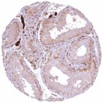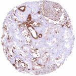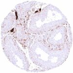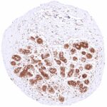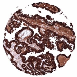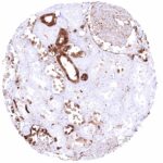 | Male genital | Prostate | Intense nuclear and cytoplasmic GSTP1 staining of basal cells while staining is faint, weak or absent in acinar cells. |