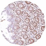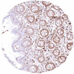 | Colon | Strong predominantly cytoplasmic GSTP1 positivity of epithelial cells. Staining is most intense at the base of crypts and decreases slightly towards the surface epithelium. | |