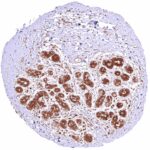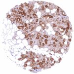 | Female genital | Breast | Moderate to strong, nuclear and cytoplasmic GSTP1 positivity of most luminal epithelial cells, however, some of them may remain negative, at least in some samples. Staining is somewhat less intense in basal/myoepithelial cells. |