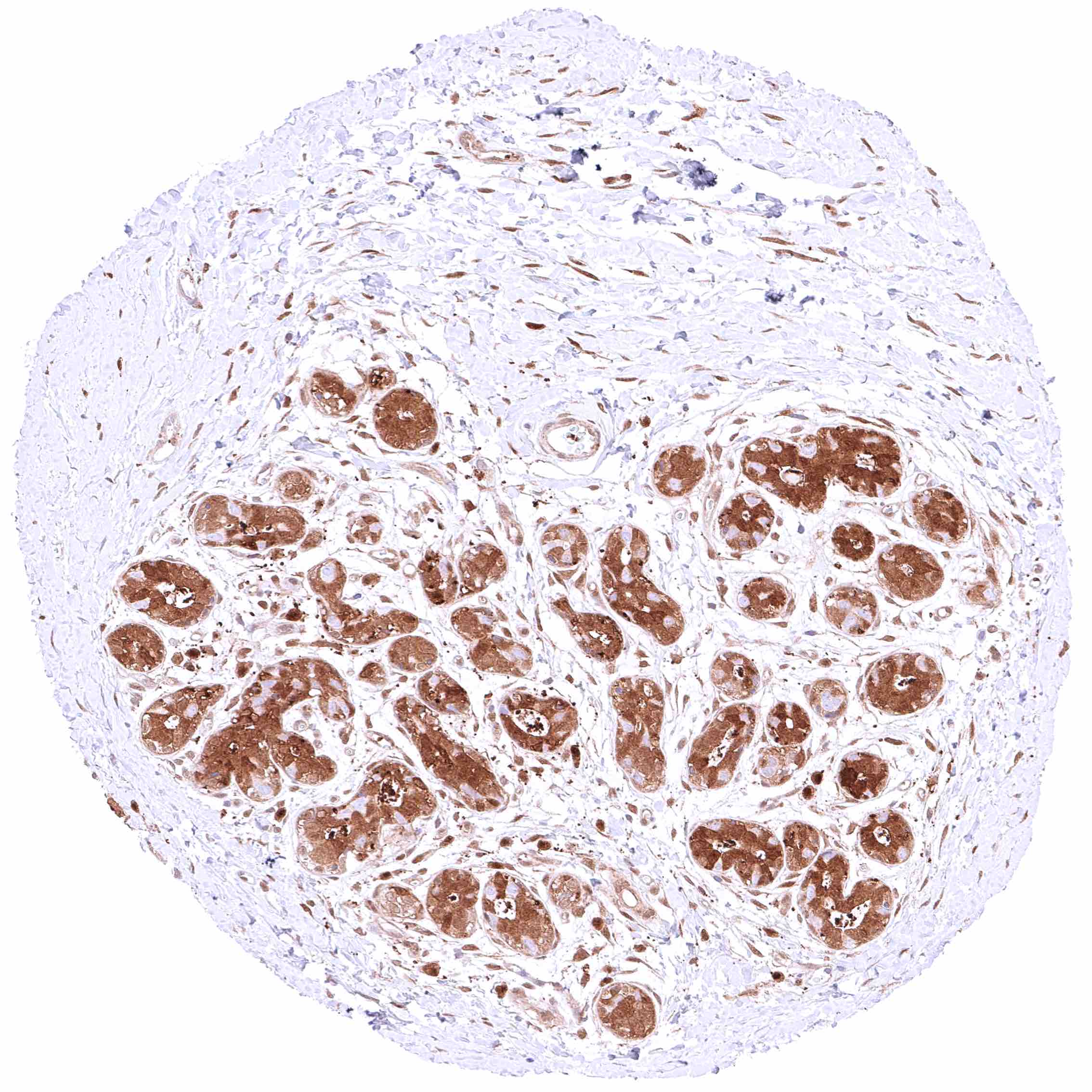 | Pancreas | Weak to moderate, nuclear and cytoplasmic GSTP1 positivity of acinar cells. Strong GSTP1 staining of intercalated and excretory ducts. Weak GSTP1 positivity of only a subset of islet cells. | |