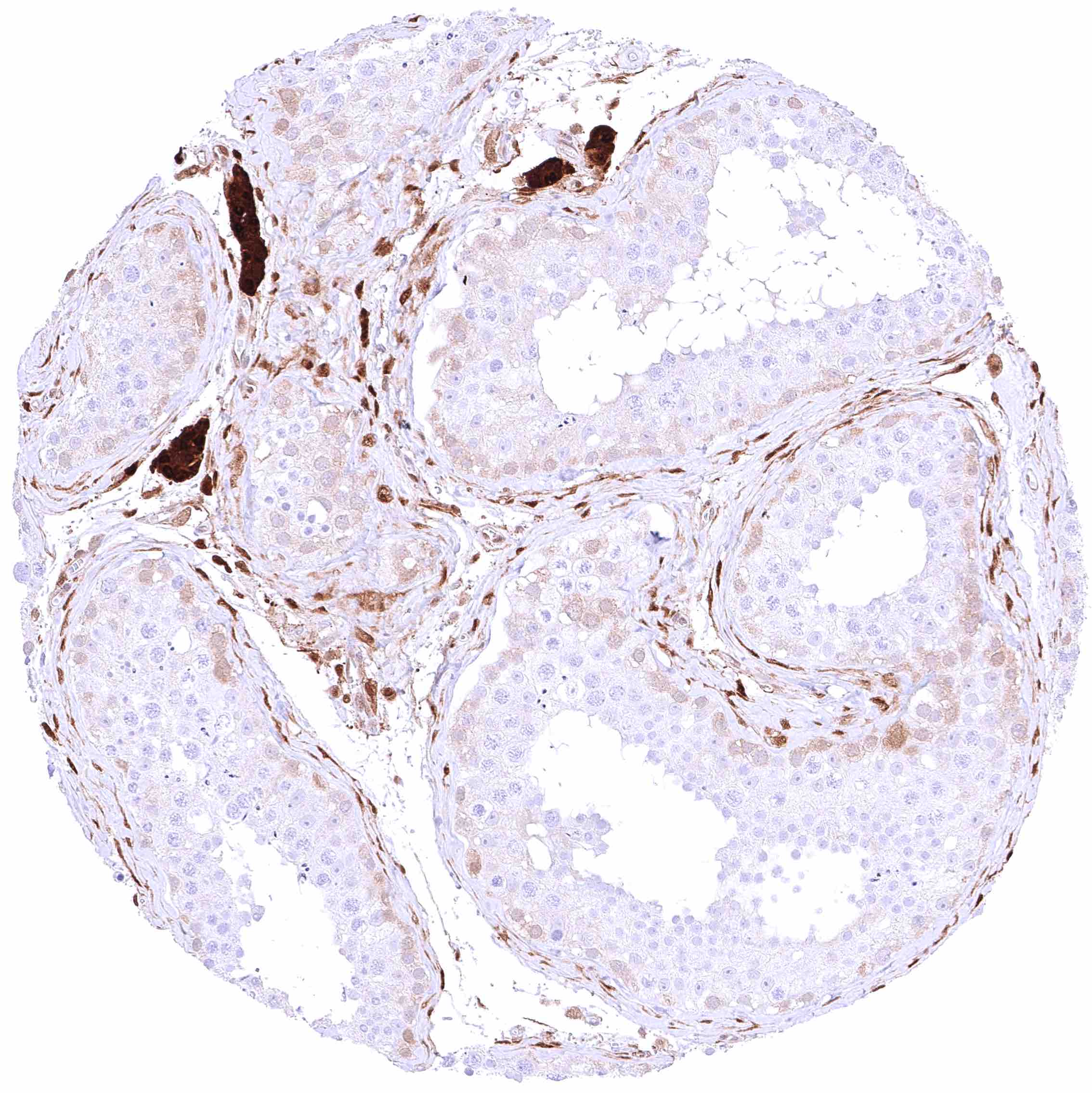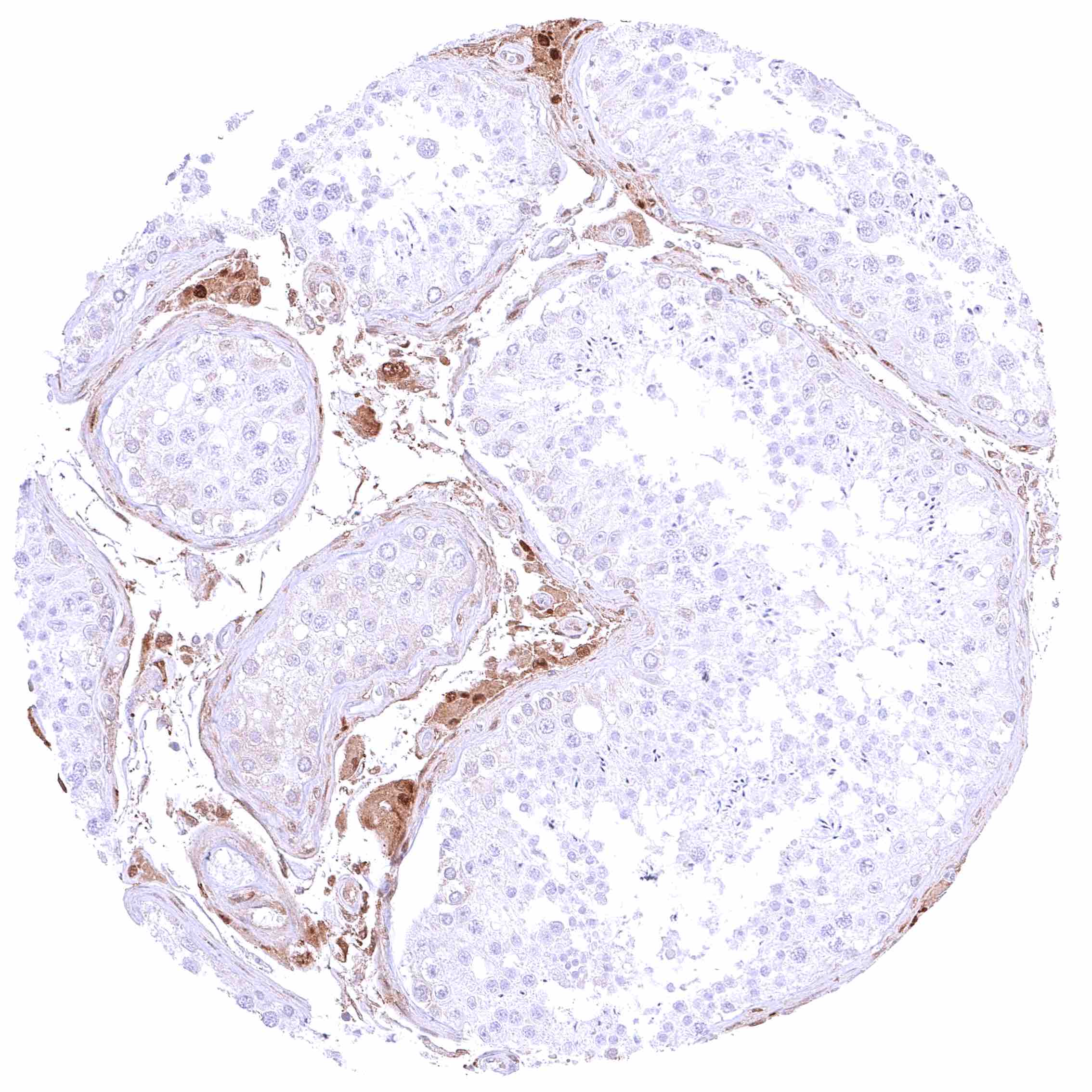 | Testis | Faint cytoplasmic GSTP1 positivity of spermatogonia while maturing germ cells and Sertoli cells are GSTP1 negative. Moderate to strong GSTP1 positivity of Leydig cells. | |