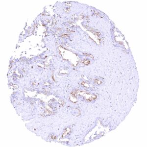 | Seminal vesicles | Moderate to strong PODXL staining of luminal/apical membranes of a subset of epithelial cells. | |