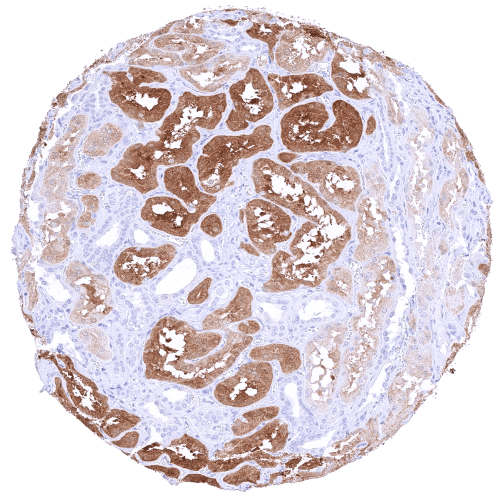 Positive control = Kidney: A moderate to strong cytoplasmic and nuclear PSAT1 staining must be seen in a fraction of tubulus cells.