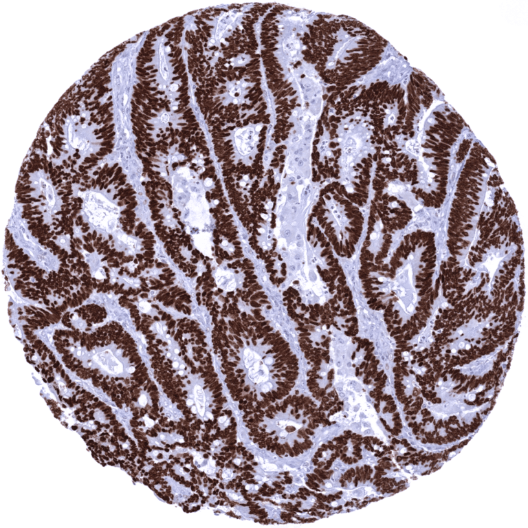 Positive control = Colon: A strong nuclear staining should be seen in virtually all columnar epithelial cells.